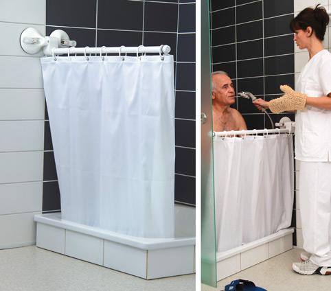 - mit einklips- und zerlegbarer 3-teiliger flexibler Vorhangstange aus PVC Rohr (weiß) mit abnehmbarem Abdeckstopfen.