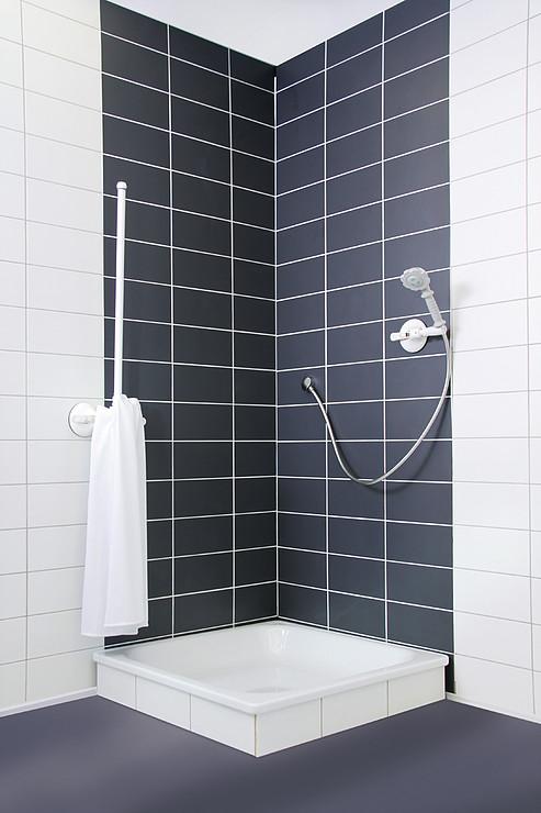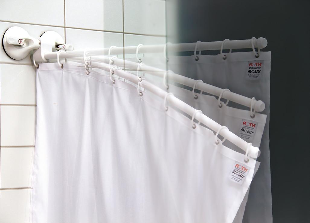 Der Mobile Sicht- und Spritzschutz von Roth ist funktional und ideal bei der Pflege körperlich eingeschränkter Personen. Der Gelenkarm ist nach oben schwenkbar oder lässt sich bei vertikaler Befestigung zur Seite schwenken. Die integrierte Bremse hält den Mobeli Gelenkarm selbsttätig in der gewünschten Position. Der lange 3-teilige elastische Arm wurde so konzipiert, dass keine starken Hebelkräfte - auch beim Auflehnen - auf die tragende Wand einwirken. Durch seine Dreiteilung lässt sich der Vorhangaufnahmearm zu verschiedenen Längen umbauen und die Teilstücke lassen sich frei kombinieren.