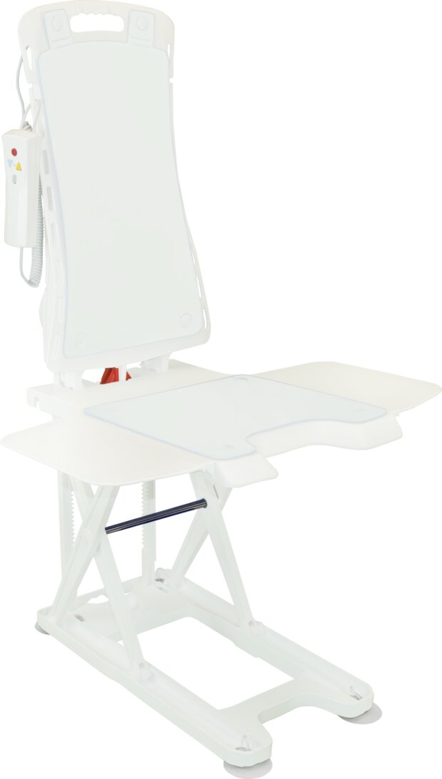 - Per Knopfdruck auf die schwimmfähige Handsteuerung lässt sich der Badewannenlifter stufenlos und sicher auf- und abfahren und in jeder Position arretieren.