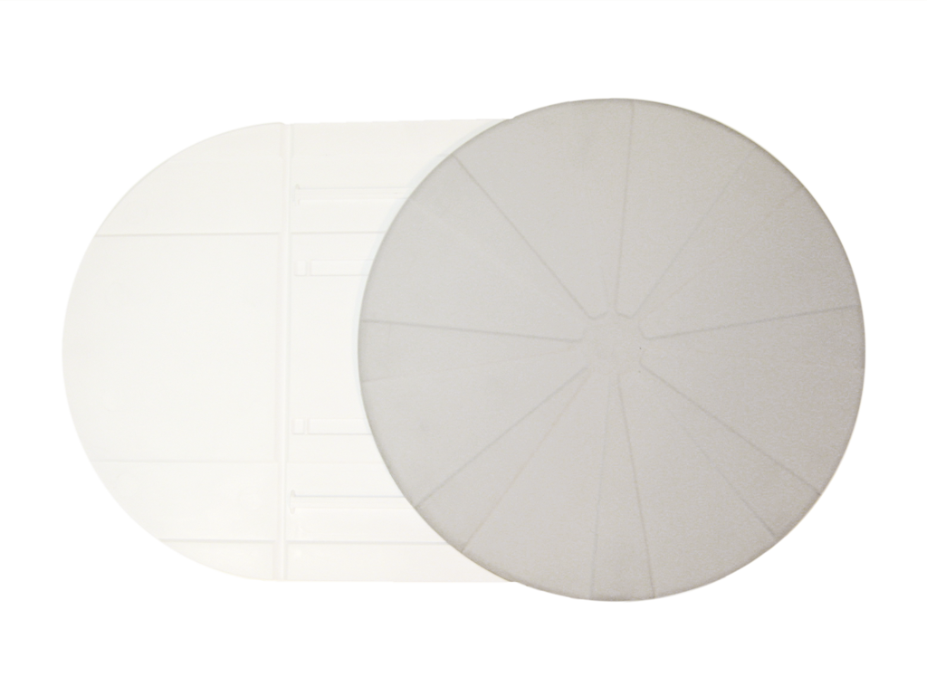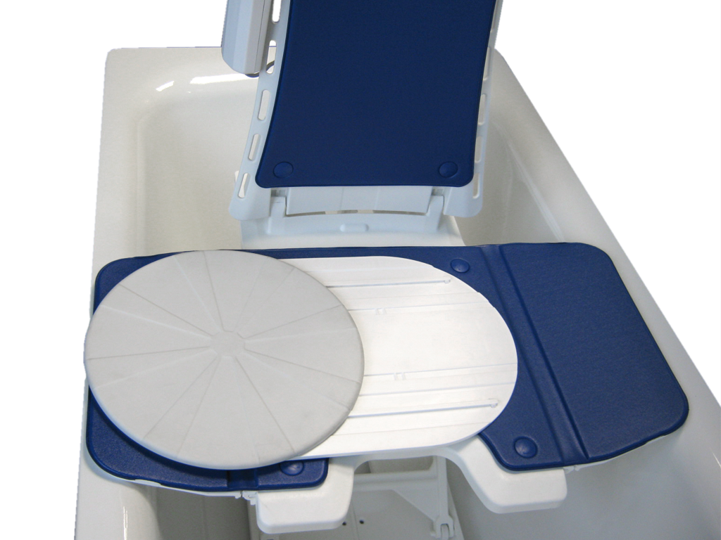 Die weiß-graue Dreh- und Übersetzhilfe Vitaturn L von Drive Medical unterstützt als ergänzendes Zubehör auf der Sitzfläche des Badewannenlifters das Übersetzen, Positionieren und Drehen des Patienten auf den Badelifter und erleichtern als Transferhilfe beim Baden das Einsteigen in bzw. Aussteigen aus der Badewanne.