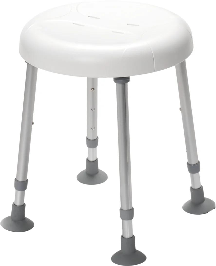 Der runde Duschhocker Delphi ist höhenverstellbar und mit seinem geringen Gewicht von nur 1,6 kg bis zu 180 kg belastbar. Der Delphi Duschhocker bietet im Bad vielfältige Einsatzmöglichkeiten. So kann der Duschhocker Delphi z. B. vor dem Waschbecken oder in der Dusche verwendet werden. Aber auch außerhalb des Badezimmers kann er z. B. in der Küche zum Einsatz kommen.
