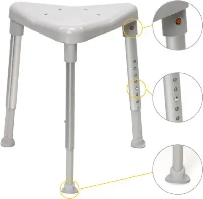 Der Duschhocker Etac Edge mit drei Beinen ist höhenverstellbar und ermöglicht die Einstellung einer individuellen Sitzhöhe von 42 bis 57 cm. Als Duschsitz vereint Einfachheit und Funktionalität und ist äußerst einfach in der Handhabung und mit 2,6 kg von geringem Gewicht. Die dreibeinige Konstruktionsweise macht den Duschsitz als Hilfsmittel mit einer Belastbarkeit bis 130 kg außerordentlich stabil.