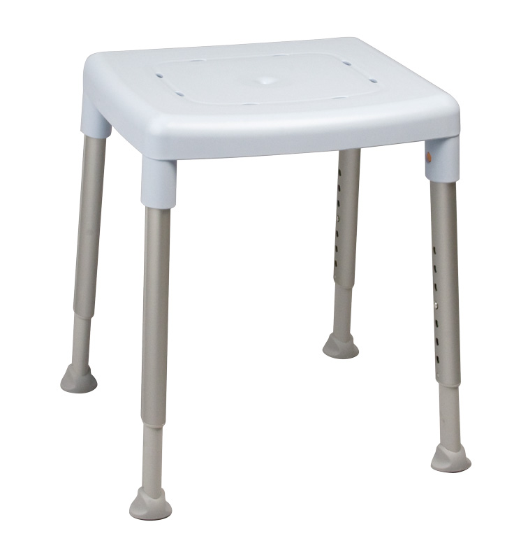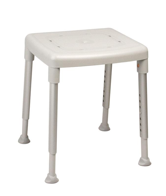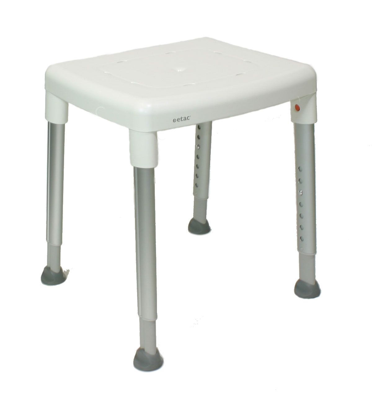 Der viereckige ETAC DuschhockerSmart ist äußerst einfach in der Handhabung, von geringem Gewicht und dabei trotzdem außerordentlich stabil. Der schwedische Duschhocker wird in den Duschsitzfarben Weiß, Grau oder Eisblau mit einer maximalen Belastbarkeit von bis zu 150 kg angeboten. Die Sitzhilfe für Ihr Bad besitzt eine bequeme, große Sitzfläche mit Ablauflöchern. Der Etac Duschhocker Smart ist über ein Clique-System einfach höhenverstellbar und ermöglicht Sitzhöhen von 42 bis 57 cm. Die einzelnen, in der Höhe verstellbaren Aluminium-Teleskopbeine des Badhockers gewährleisten einen sicheren Stand. Seine speziellen Gummifüße gleichen auch auf stark unebenen Böden Höhenunterschiede sicher aus.