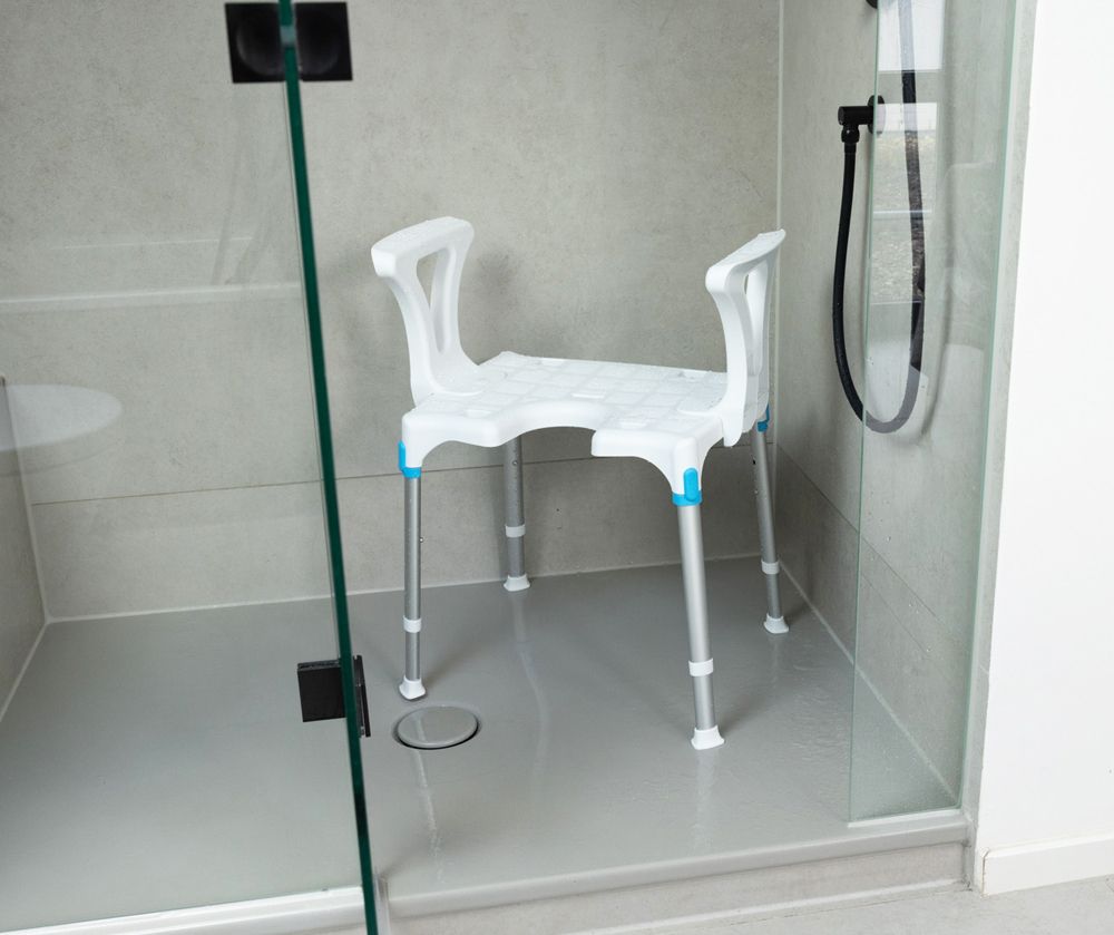 - Benötigen Sie zudem eine sichere Stütze für den Rücken, bietet sich alternativ ein modularer Duschstuhl an, den Sie je nach körperlicher Einschränkung entweder als Duschhocker oder Stuhl verwenden können.
