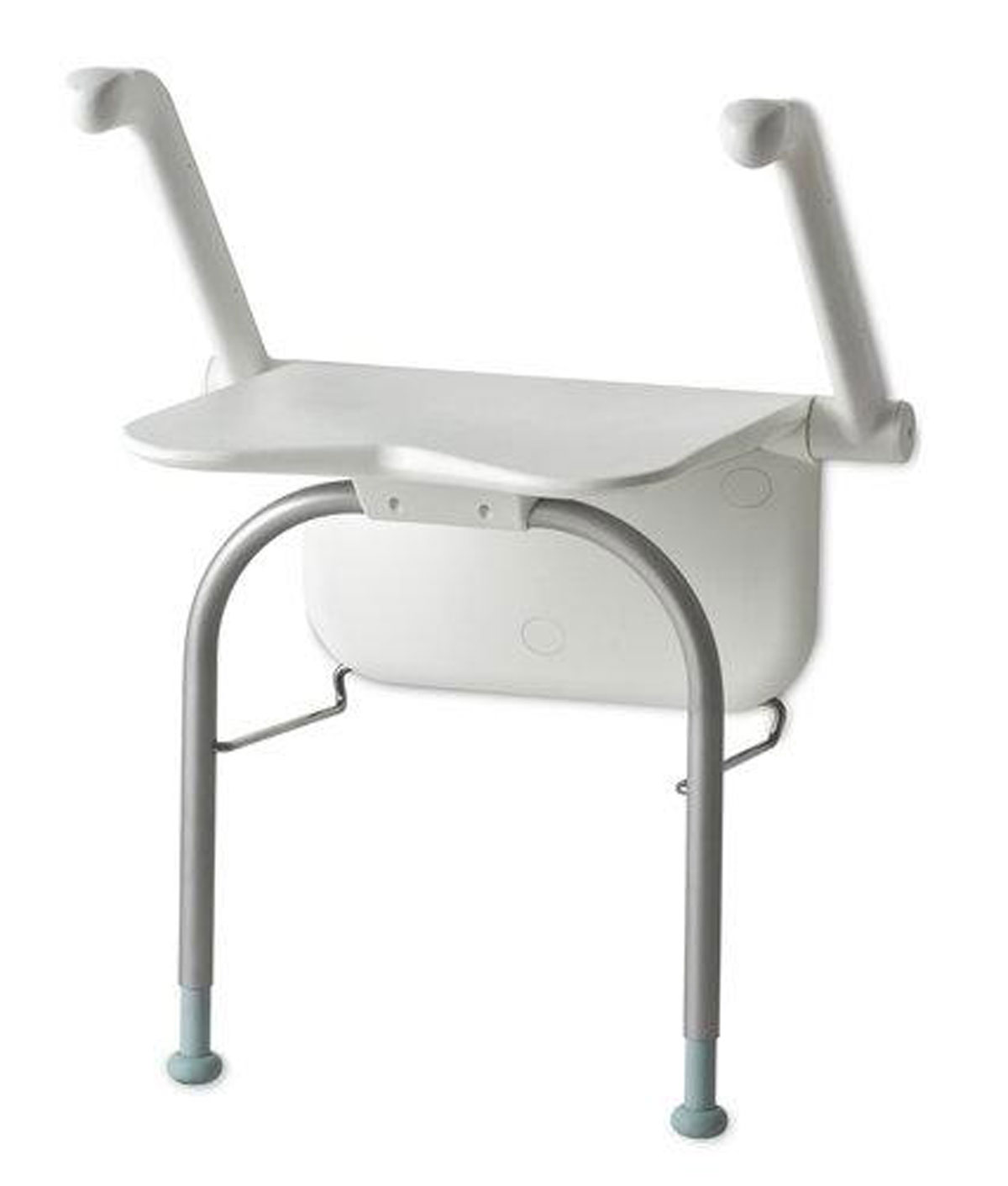 - Duschklappsitz Etac Relax mit Armlehnen und Stützbeinen weiß / grau
