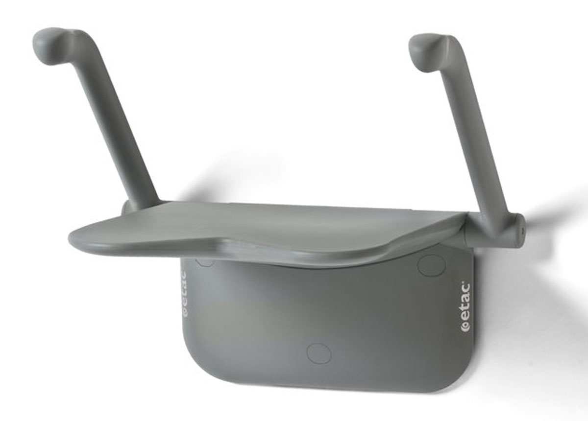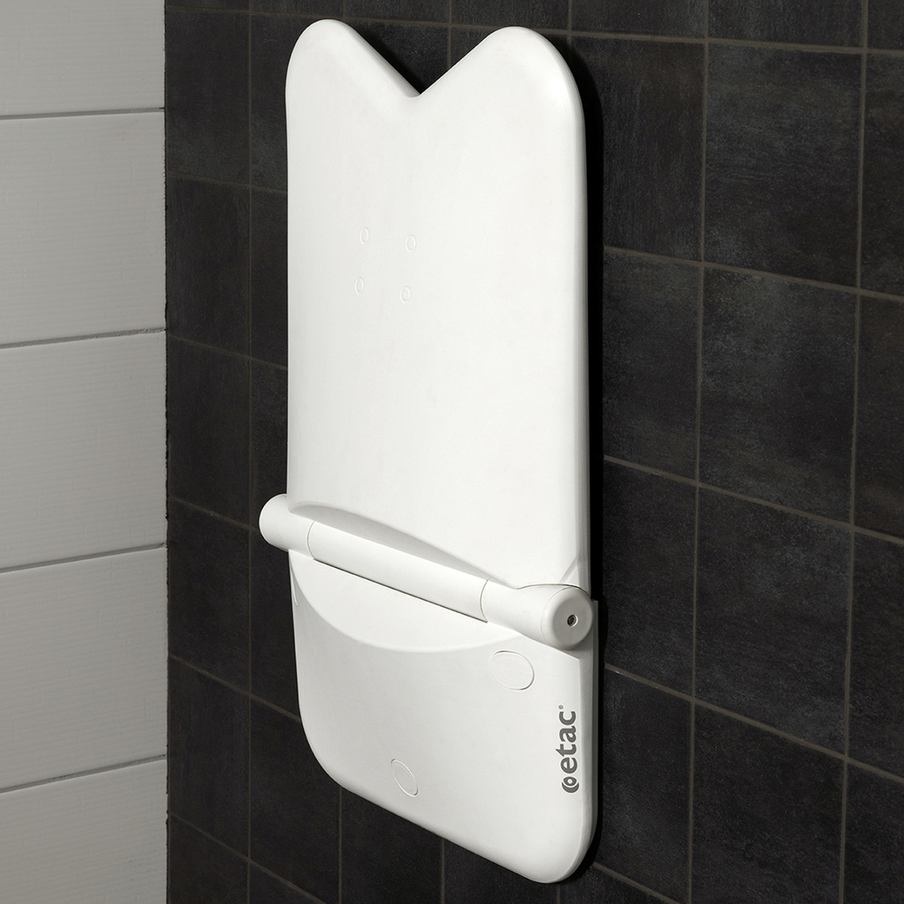 Ein fest an der Duschwand montierter Duschklappsitz bietet die richtige Alternative in kleinen Duschen, auch wenn nicht alle Bewohner einen Duschsitz benötigen. Platzsparend nach oben geklappt, bietet ein Duschklappsitz dann wieder genügend Platz, um stehend der Körperpflege nachgehen zu können. Der Etac Relax Duschklappsitz lässt sich auch unter Verwendung der stützenden Armlehnen besonders schmal bei Nichtgebrauch hochklappen.