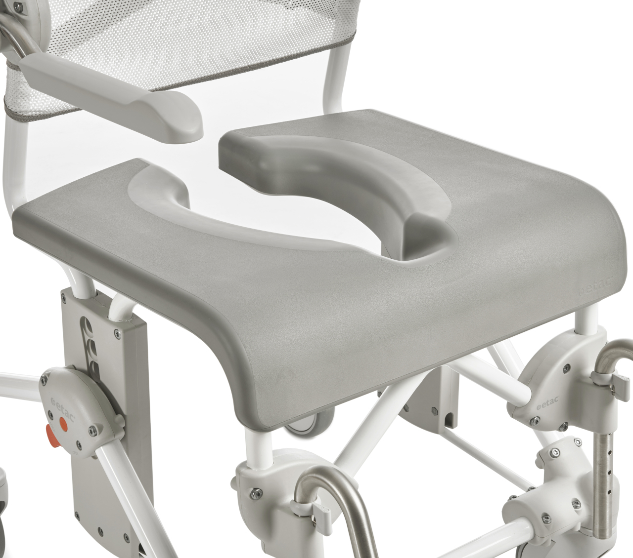 Seine weiche, einstellbare Rückeneinheit und die stabilen Fußplatten bieten Ihnen große Sicherheit im Bad, beim Duschen oder bei der Nutzung als Toilettenrollstuhl zum Überfahren der Toilette. Ausgestattet mit der ETAC Easy Clean Oberfläche bietet die Sitzfläche des Dusch- und Toilettenrollstuhl Swift Mobil 2 die perfekte Balance zwischen Rutschfestigkeit und Sauberkeit.