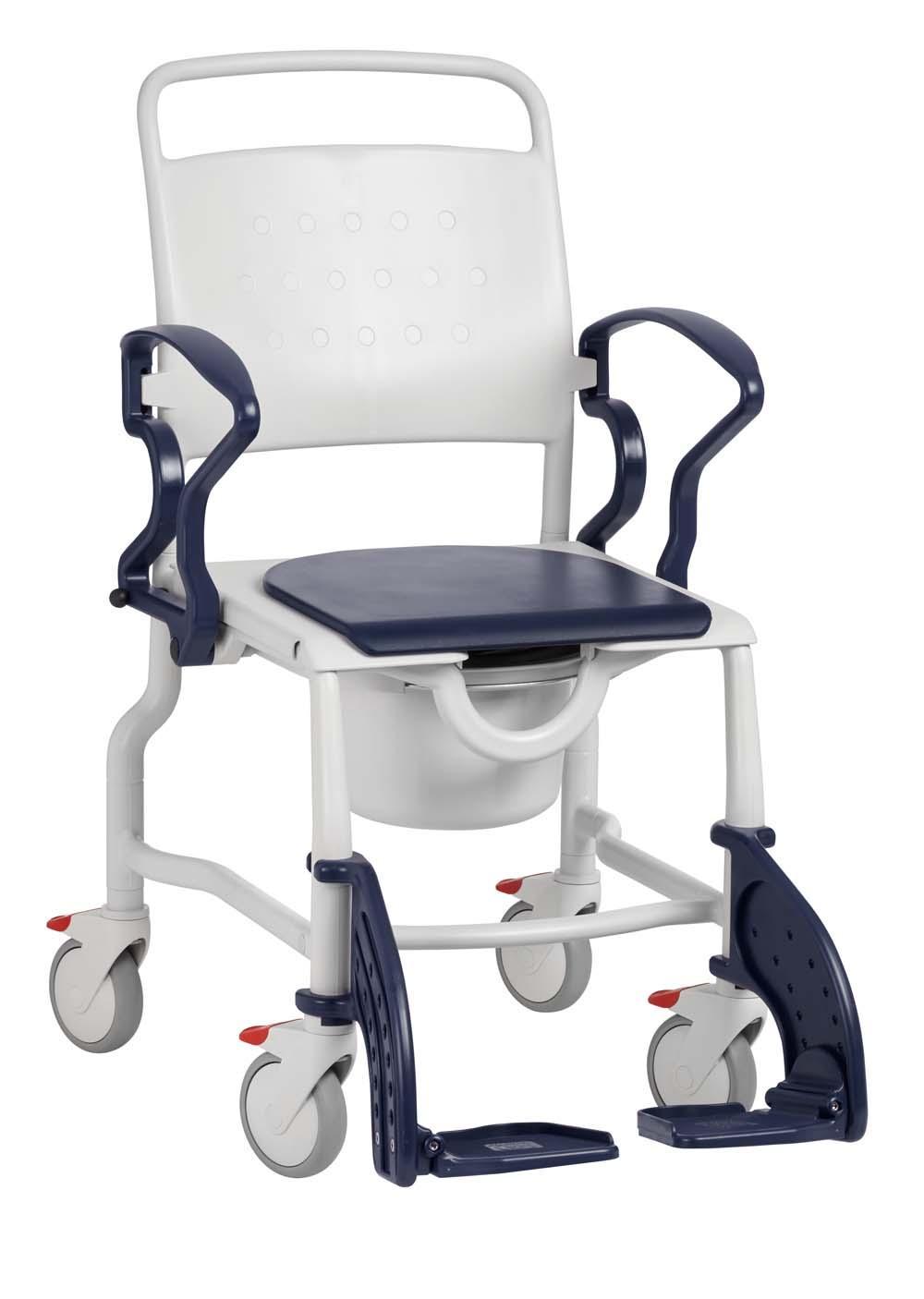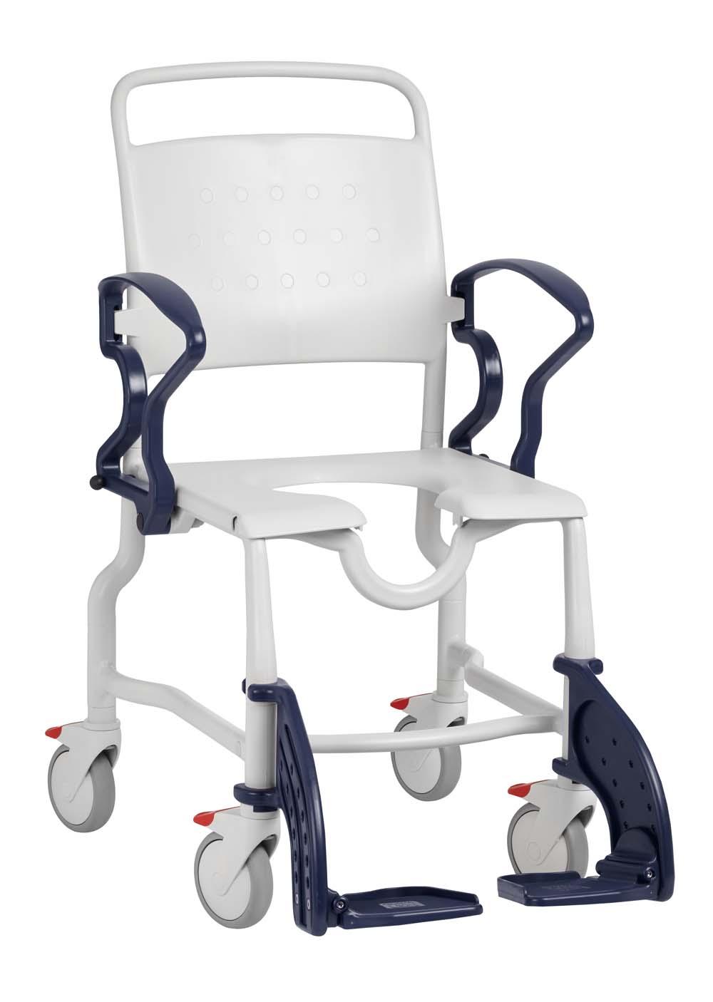 Rebotec bietet Ihnen mit dem Duschrollstuhl Erfurt ein Modell, dass Ihnen den seitlichen Ein- und Ausstieg erleichtert, da Sie die Armlehnen nach hinten abschwenken können, um z.B. ein Rutschbrett für den seitlichen Transfer zu nutzen. Seine ungepolsterte Sitzplatte besitzt einen nach vorne oder auch wahlweise nach hinten geöffneten Hygieneausschnitt. Das erleichtert Ihnen die Intimpflege.