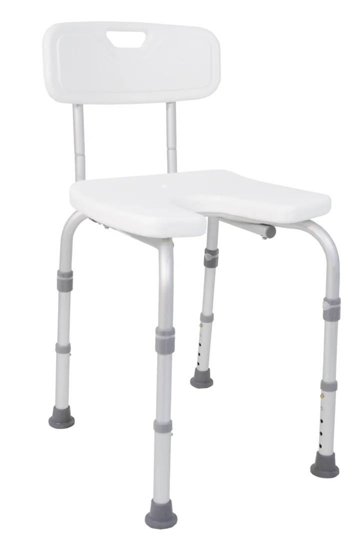 - Duschstuhl mit großer Sitzfläche, mit größtmöglichem Hygieneausschnitt