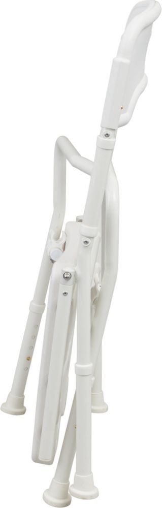 Ausgerüstet mit rutschfesten Gummifüßen besitzt der schmal faltbare Duschstuhl eine hohe Standfestigkeit.