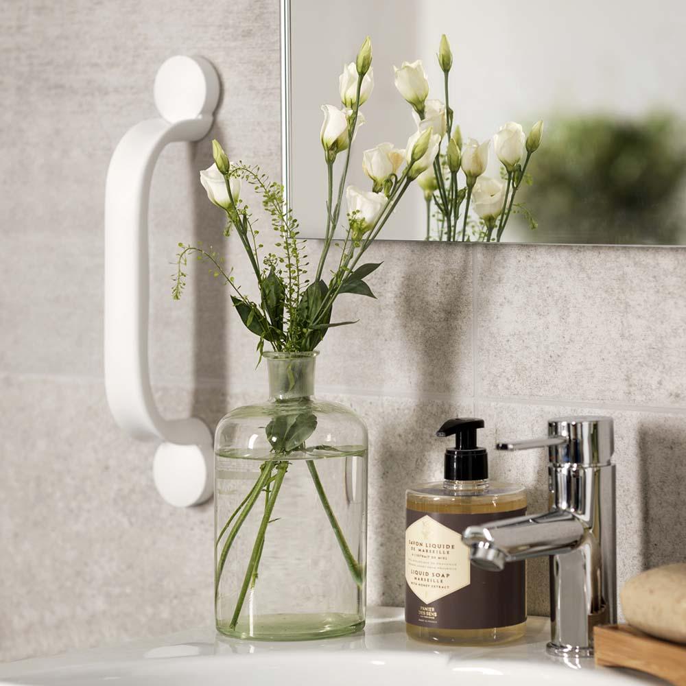 Die durchdachte Form und die Oberfläche der Haltegriffe Flex von Etac sorgen auch bei feuchten Händen für einen sicheren Halt