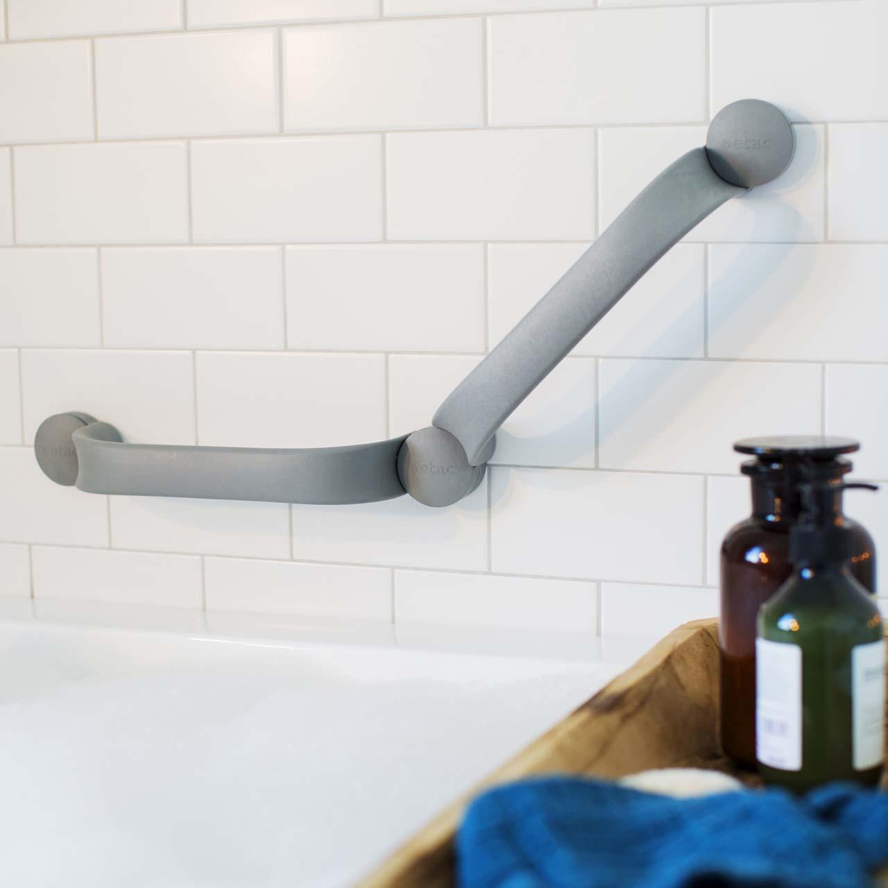 Das modulare System der Etac Flex Haltegriffe zum Kleben oder Bohren lässt sich einfach in der Länge und der Form zusammensetzen, die zu Ihnen und Ihrem Badezimmer passt