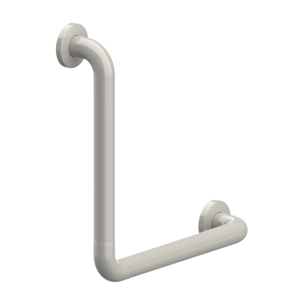 - Winkelgriff als Bad-Haltegriff mit korrosionsgeschütztem, durchgehendem Stahlkern und hochglänzender Oberfläche aus Polyamid