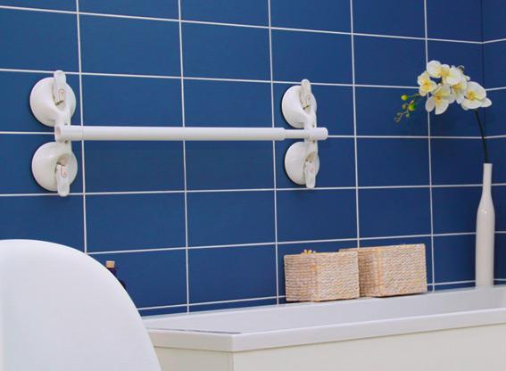 Nutzen Sie ihn als horizontale Trainingsgreifstange und als Umsetzhilfe für den Transfer im Badezimmer als sicheren Haltegriff für die Dusche oder als Einstiegshilfe bei der Wanne.