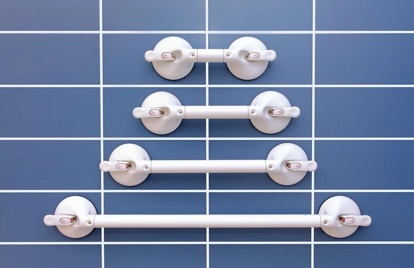 - Die mobilen Festmaß Haltegriffe mit Saugnapf sind für ein Fliesenrastermaß von 150 x 150 mm optimiert