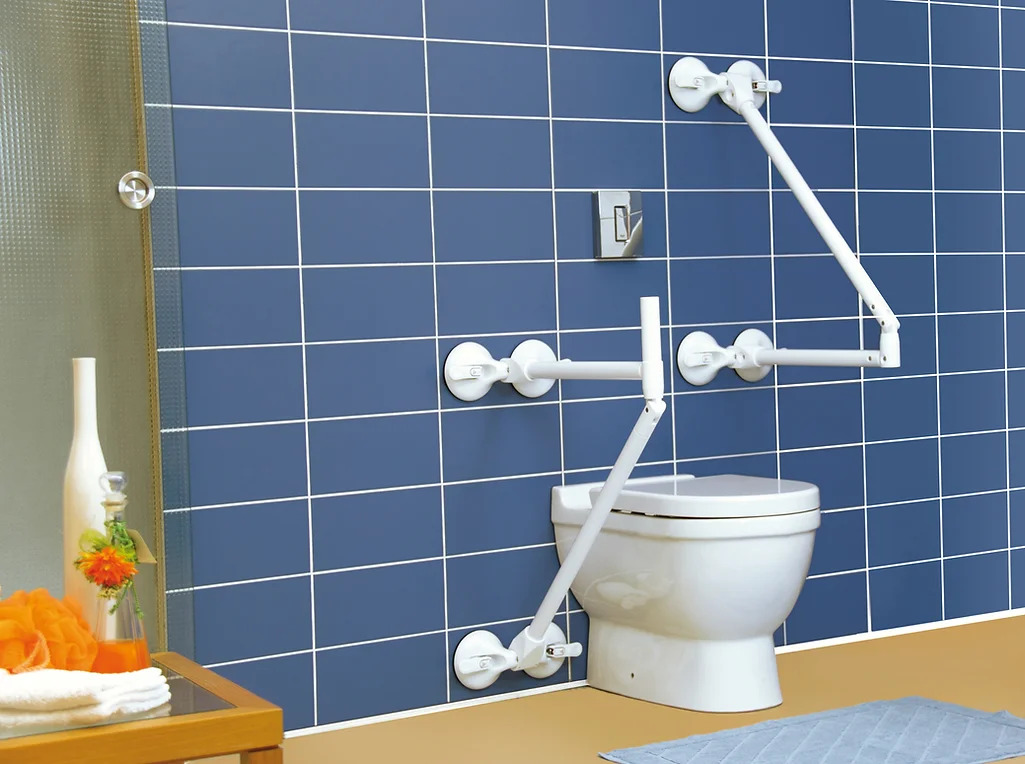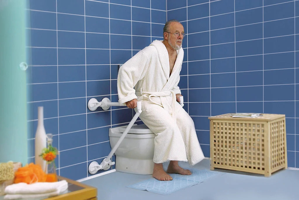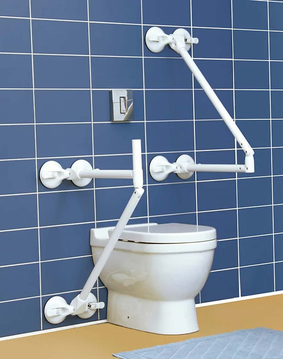 - Bringen Sie den Roth Stützhaltegriff mit Saugnäpfen neben der Toilette aufwärts oder abwärts an, so können Sie sich abstützen oder hochziehen und sich drehen.