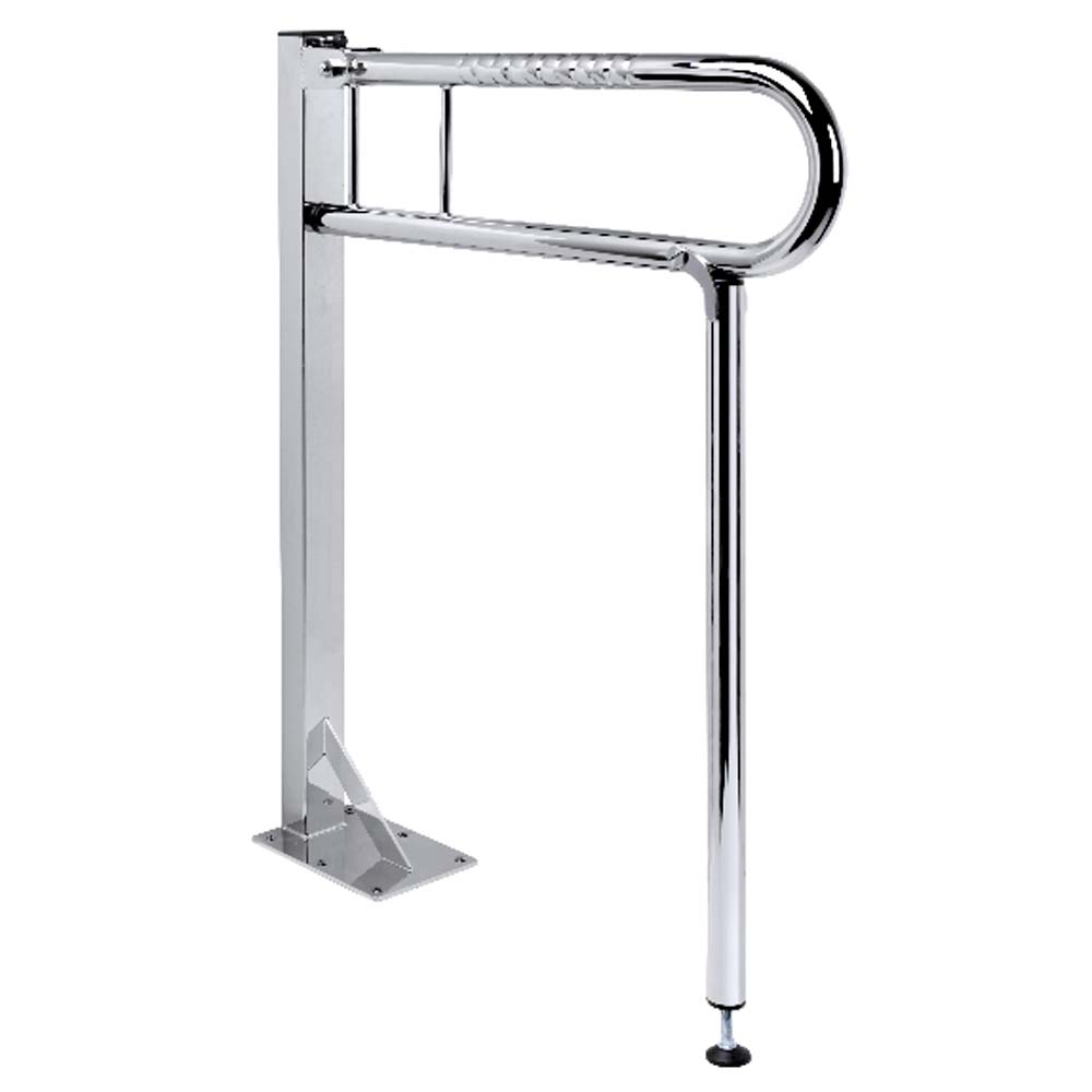 Der Edelstahl FRELU Stützklappgriff mit Standsäule und Bodenstütze für die Bodenmontage bietet Ihnen als 150 kg hochbelastbarer Bad-Haltegriff neben der Toilette Sicherheit beim Transfer zur eigenständigen WC-Benutzung. Optional kann der am Boden befestigte Stützgriff mit Bodenstütze gleich mit Toilettenpapierhalter ausgestattet werden. Als stützender Bad-Haltegriff mit hochklappbarem Griffbügel sorgt der polierte Edelstahl Klappgriff mit Fingergriff-Prägung für mehr Selbstständigkeit und Sicherheit körperlich beeinträchtigten Personen im Badezimmer und lässt sich, je nach Bedarf, praktisch bei Nichtbenutzung hoch- und ausklappen.