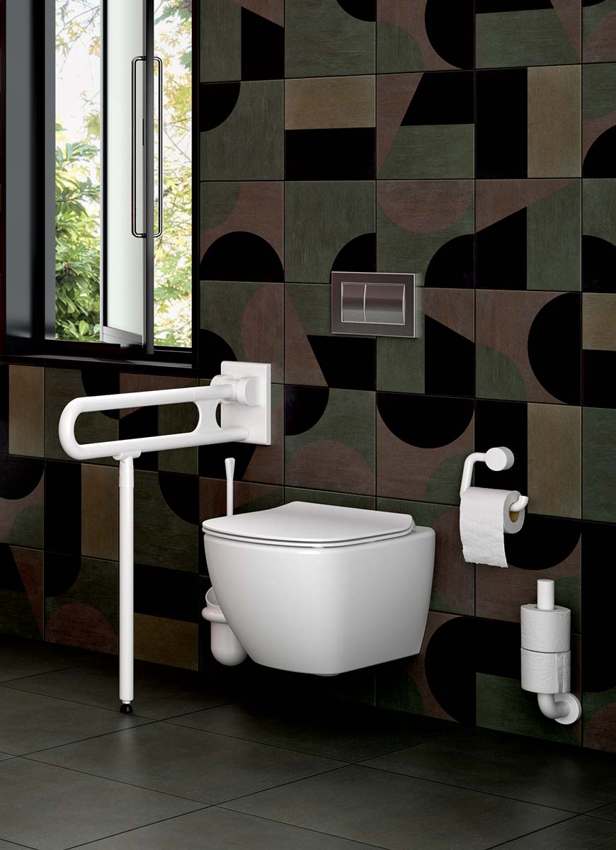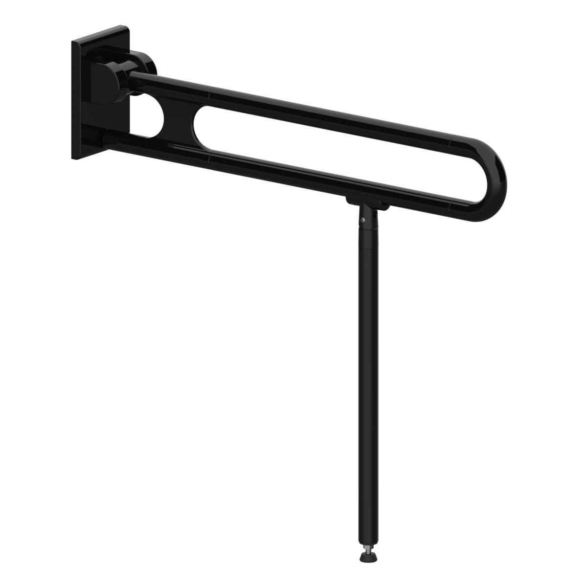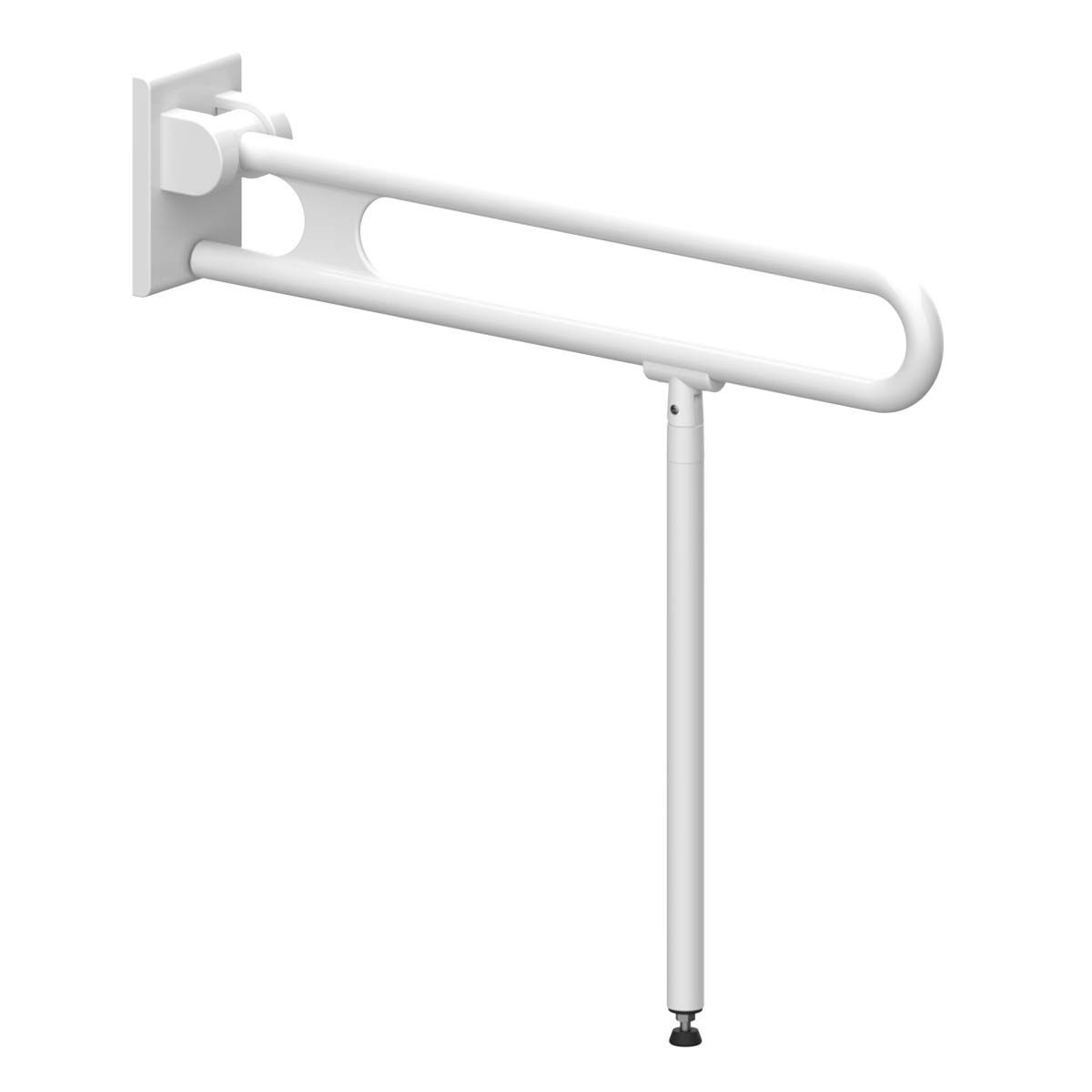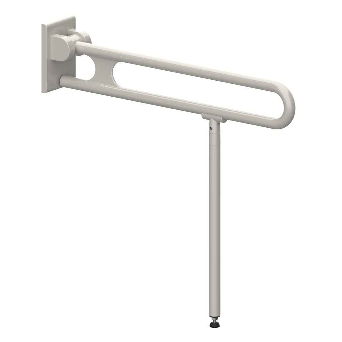 Der Stützklappgriff mit Bodenstütze Nylon Care vario ist inklusive Grundplatte und abgedeckter Verschraubung in den Gesamtlängen 600, 725, 850 oder 900 mm in modernen Nylonfarben lieferbar. Die Ausstattungsserie Nylon Care bietet neben dem Stützklappgriff mit Bodenstütze eine Vielzahl an Artikeln um ein barrierefreies Badezimmer auszustatten. Das hochwertig verarbeitete Material im zeitlosen, klaren Design hat eine hohe Funktionalität. Gefertigt aus hochwertigem Polyamid, erfüllen die hochklappbaren Haltegriffe höchste Ansprüche im Pflegebereich und im barrierefreien Privatbad.