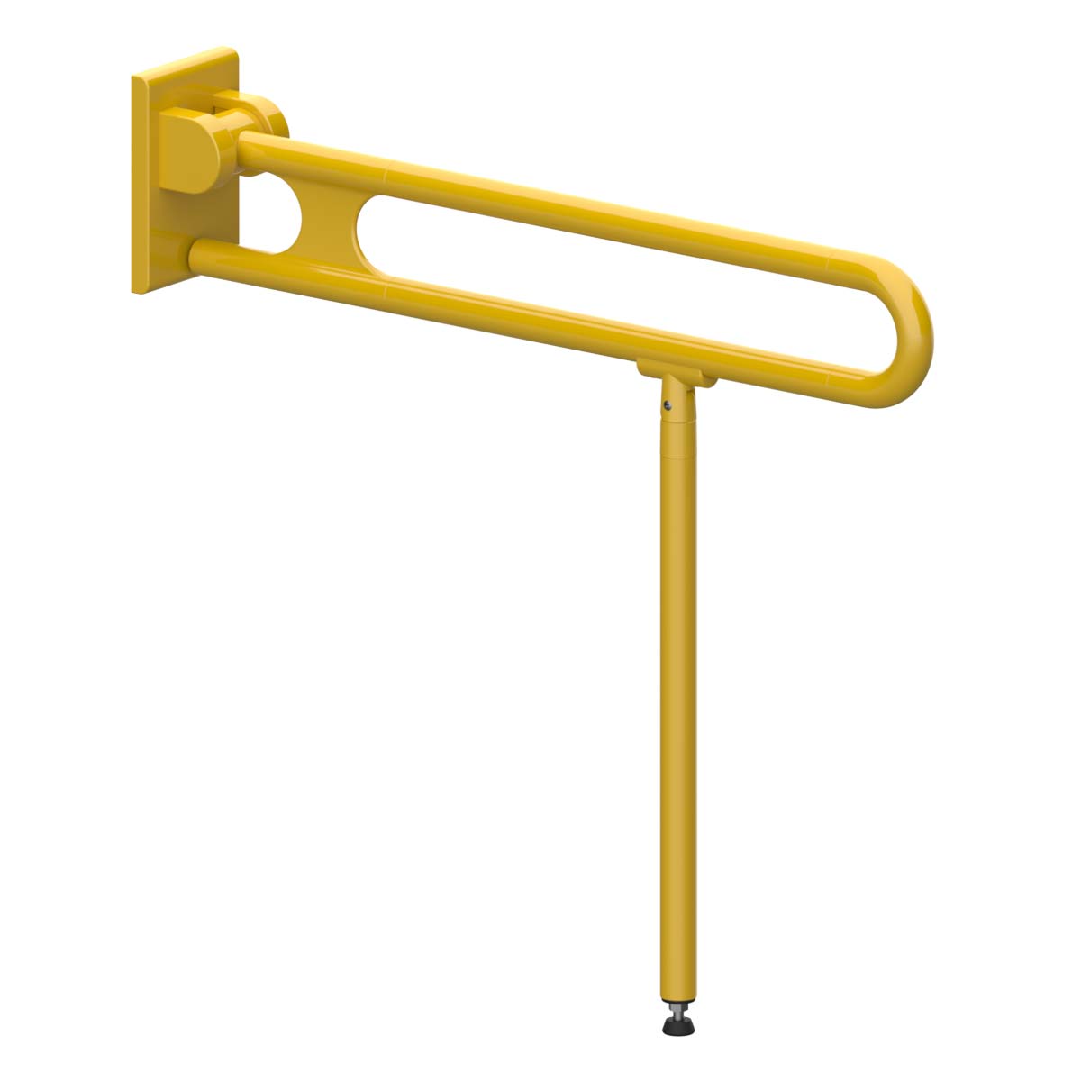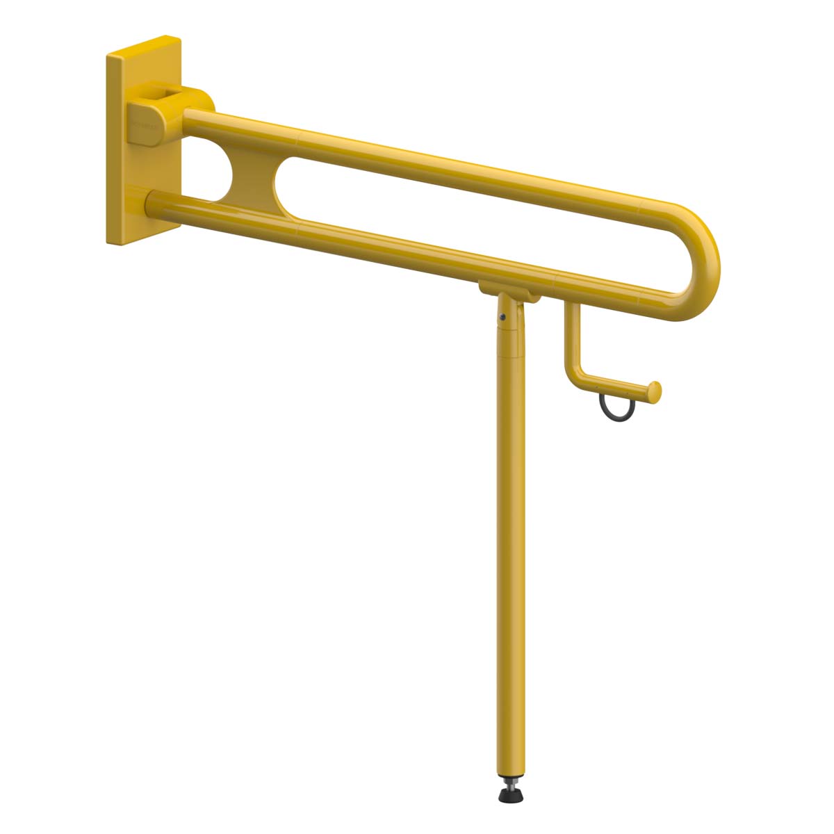 Ein Stützklappgriff mit Bodenstütze aus Nylon / Ultramid besteht aus Polyamid. Im Gegensatz zu pulverbeschichteten Stahlhaltegriffen entscheiden Sie sich hier für einen eleganten, hochklappbaren Stützgriff mit einer glatten, hochglänzenden Oberfläche, die sich durch ihre hohe Abriebfestigkeit, Bruchsicherheit, Festigkeit und Temperaturbeständigkeit auszeichnet. Das Material ist durchgehend umweltfreundlich durch cadmium- und bleifreie Einfärbung in der gewünschten Farbe hergestellt und lädt sich nicht elektrostatisch auf. Polyamid hat eine hohe Beständigkeit gegenüber den meisten Lösungsmitteln, Chemikalien, Reinigungs- und Desinfektionsmitteln. In der Regel lassen sich verschmutzte Teile mit einem weichen, feuchten Tuch oder handelsüblichen Allzweckreinigern mit einem ph-Wert zwischen 6 und 9 reinigen.