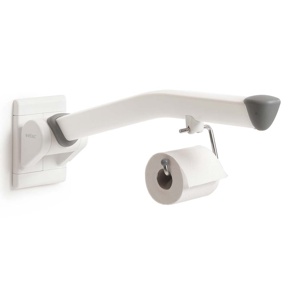 - Der Toilettenpapierhalter (81706001) aus rostfreiem Edelstahl lässt sich einfach an den Haltegriff vom Stützklappgriff Etac Rex anbringen und ermöglicht eine bequeme Erreichbarkeit des Toilettenpapiers.