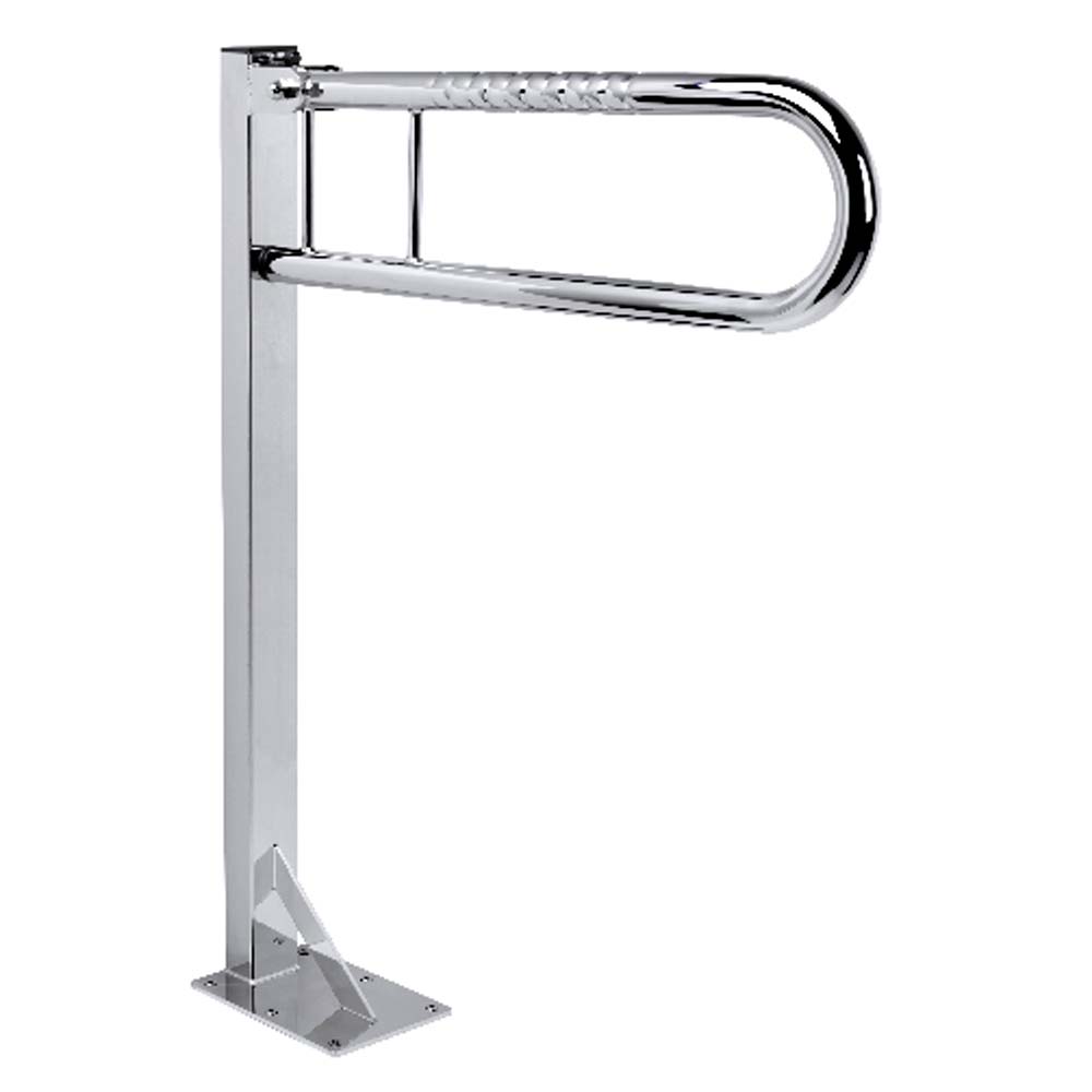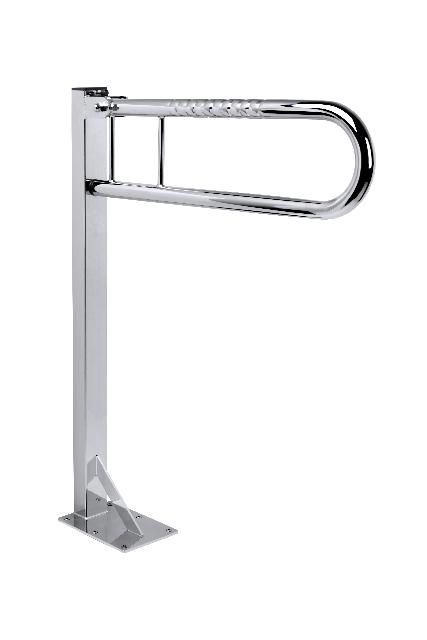 Der FRELU Stützklappgriff mit Standsäule für die Bodenmontage bietet als stützender Bad-Haltegriff bei der Toilette Sicherheit im Bad. Die hochklappbaren Haltegriffe aus Edelstahl in Bügelform mit Fingergriff sind platzsparend und bis 120 kg belastbar. Der Stützgriff zur Bodenbefestigung von Frelu kann optional gleich mit Toilettenpapierhalter geliefert werden.