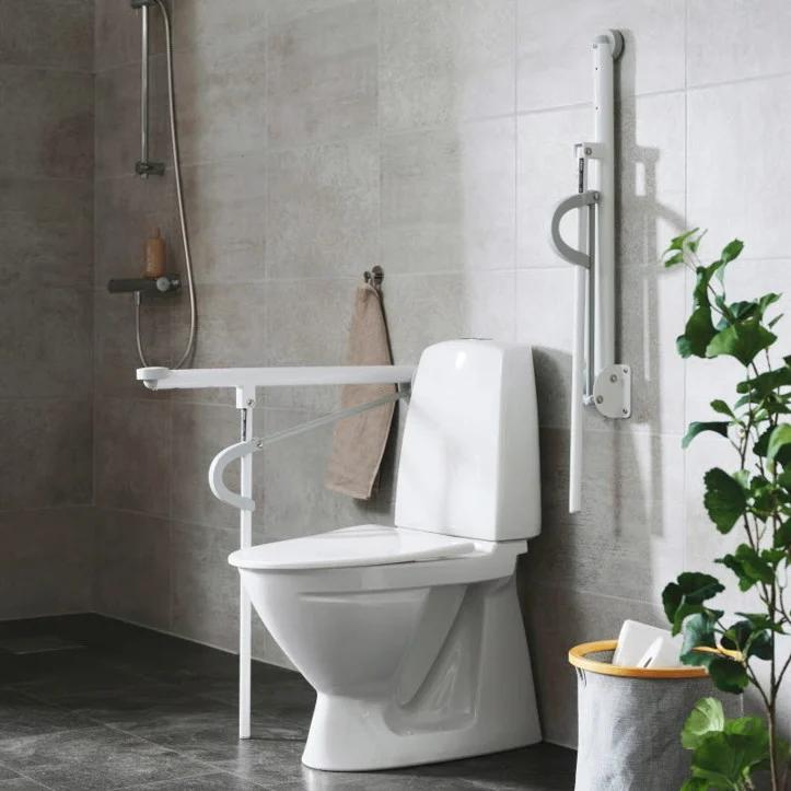 Der Haltegriff OptimaL erleichtert den eigenständigen Transfer z.B. auf den Rollstuhl, sodass auch bewegungseingeschränkte Personen selbstständig den Toilettengang erledigen können.