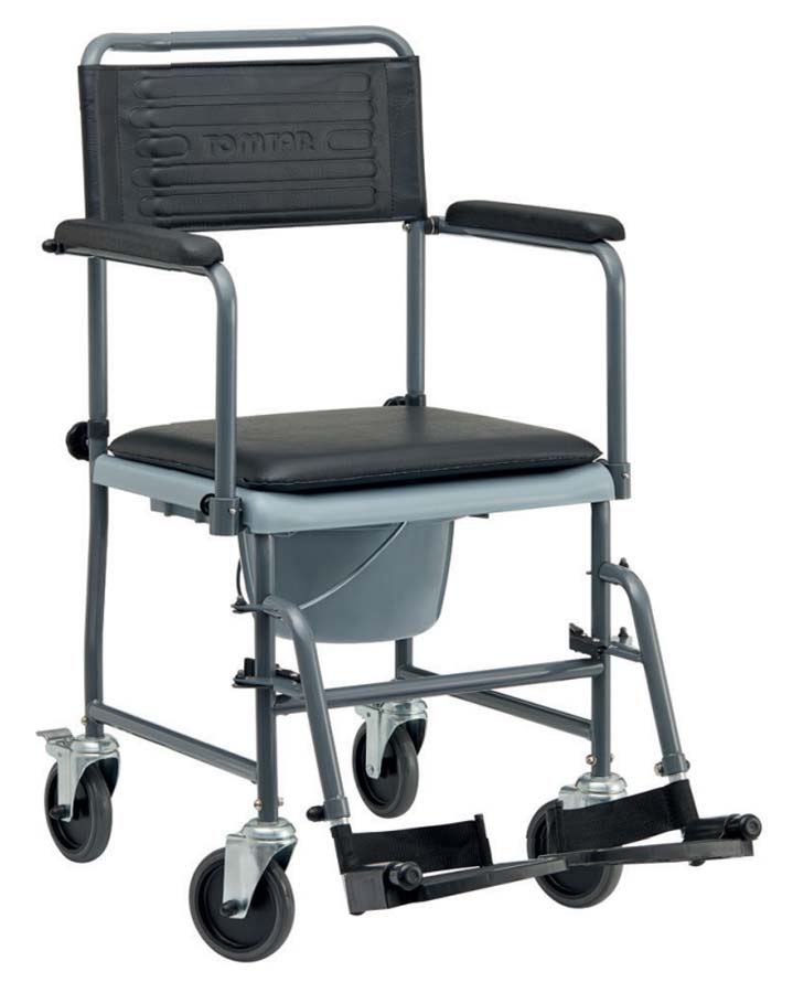 Der universelle Toilettenstuhl mit Rädern erweist sich als äußerst hilfreich bei der häuslichen und der stationären Pflege. Dank seiner vier Schwenkrollen ist er leicht zu manövrieren. Der TSU-2 Toilettenrollstuhl verfügt neben einem abnehmbaren Eimer mit Deckel auch über eine gepolsterte, geschlossene Sitzauflage, die bei Nichtgebrauch gleichzeitig den Toiletteneimer sicher verdeckt. Neben der Verwendung als fahrbaren Toilettenstuhl während der Pflege zu Hause nutzen sie ihn mit der aufgelegten gepolsterten Sitzabdeckung zum An- und Ausziehen oder zur Erleichterung in der Betreuung als Schieberollstuhl in der Wohnung.