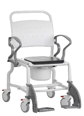Der Toilettenrollstuhl Bonn wird mit einem abnehmbaren Sitzpolster geliefert und kann als Sitzgelegenheit z.B. zum Anziehen oder als Transportrollstuhl in der Wohnung hilfreich zur Entlastung während der Pflege zu Hause behilflich sein.