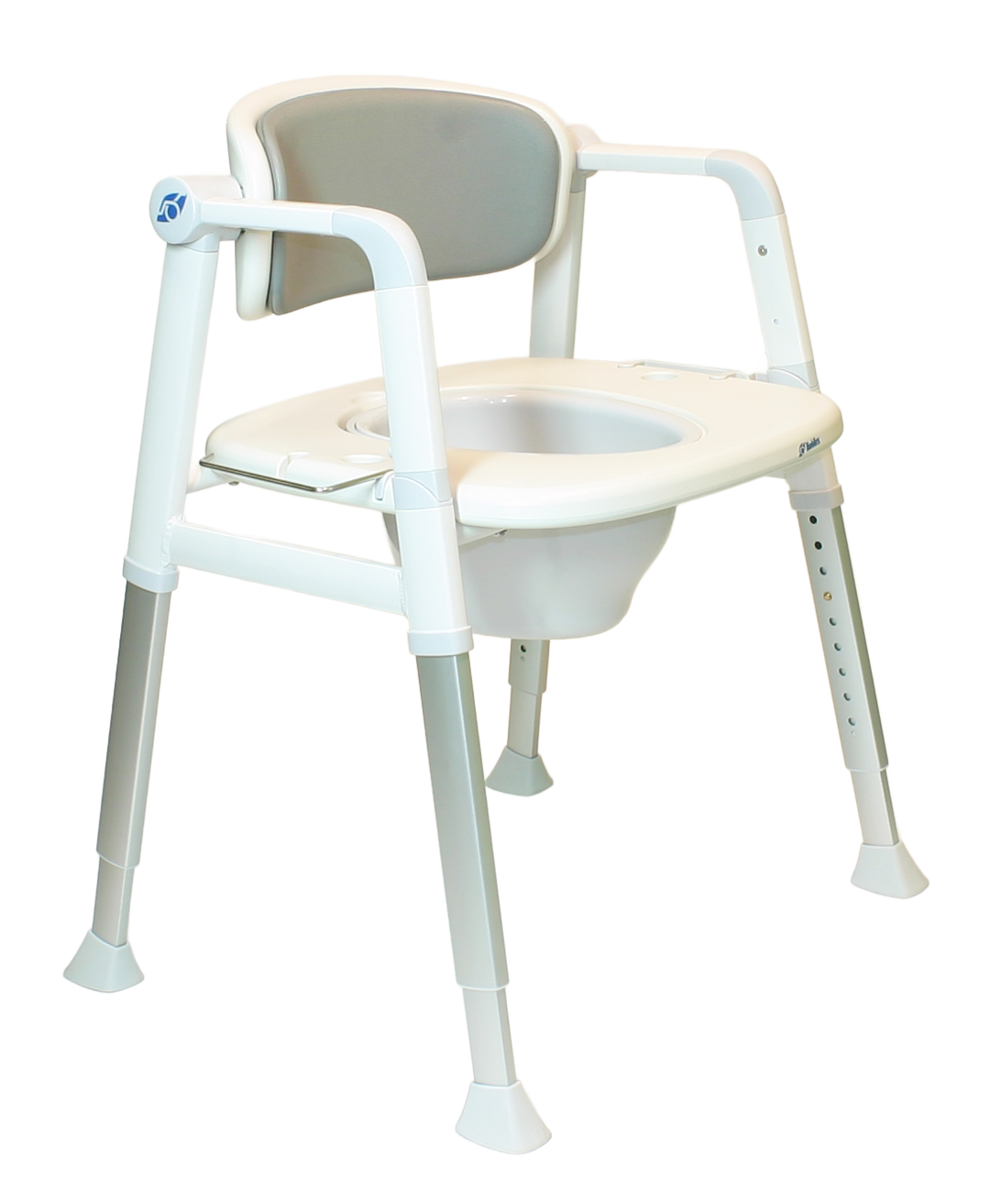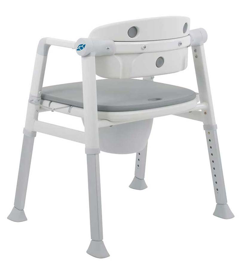 - Seine abschwenkbaren Armlehnen sorgen für einen einfacheren Transfer beim Toilettengang, z.B. vom Pflegebett auf den Toilettenstuhl. Vorab nehmen Sie das Sitzpolster ab, entnehmen den Deckel vom Toiletteneimer und können sich an das weiche Rückenpolster anlehnen. Sichere Armlehnen erleichtern das Hinsetzen und Aufstehen.
