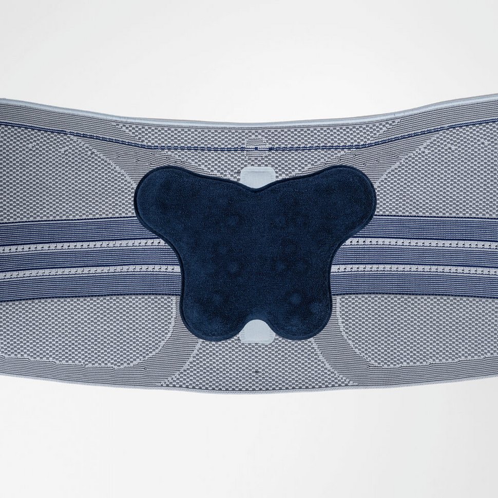 - Pelotte zur lumbalen Entlastung und Stabilisierung durch aufrichtende Wirkung der zirkulären Kompression und Aktivierung der stützenden Rumpfmuskulatur