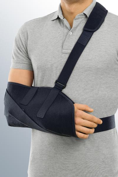 Die medi Armschlinge ist eine beidseitig universal anzubringende Schultergelenkorthese, die die Schulter in Innenrotation postoperativ ruhig stellt.