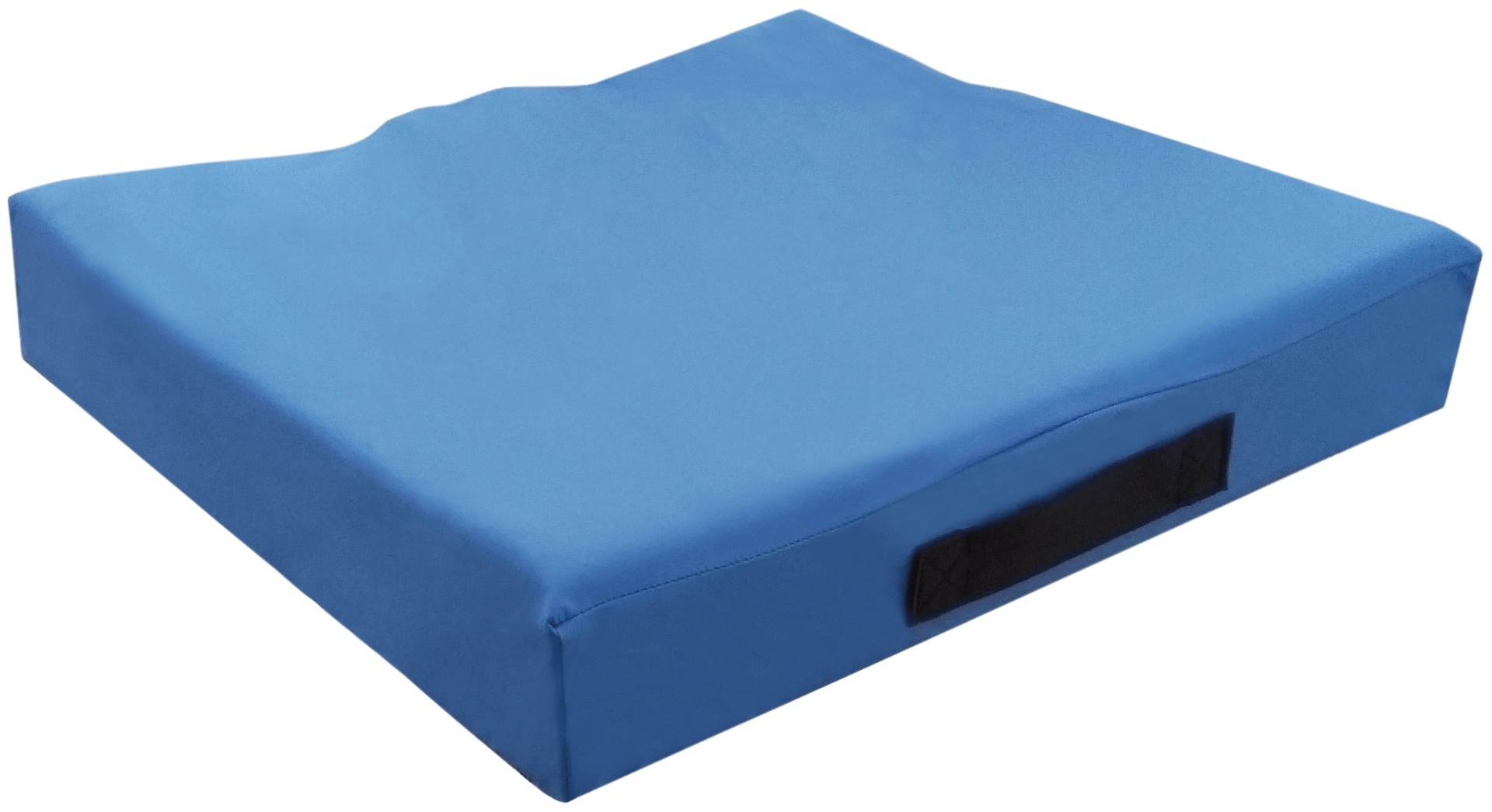 Das Rollstuhl-Sitzkissen Cube Visco wird mit einem blauen Inkontinenzbezug aus Polyurethan (PU) geliefert: