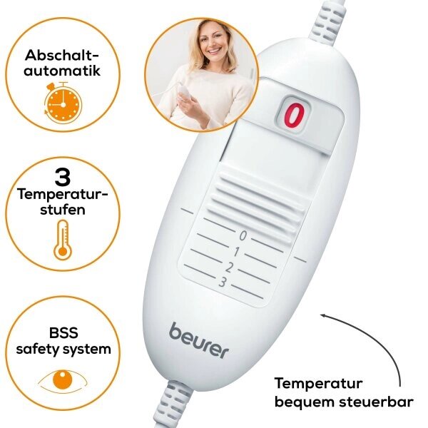 Das Beurer Heizkissen HK35 ist mit einem Flauschfaserbezug und dem BSS Sicherheitssystem ausgestattet. Der flauschig weiche Heizkörper ist atmungsaktiv und kann bei abgenommenem Schalter bei 30 °C gewaschen werden. Nach 90 Minuten schaltet die Abschaltautomatik das Kissen selbstständig ab.