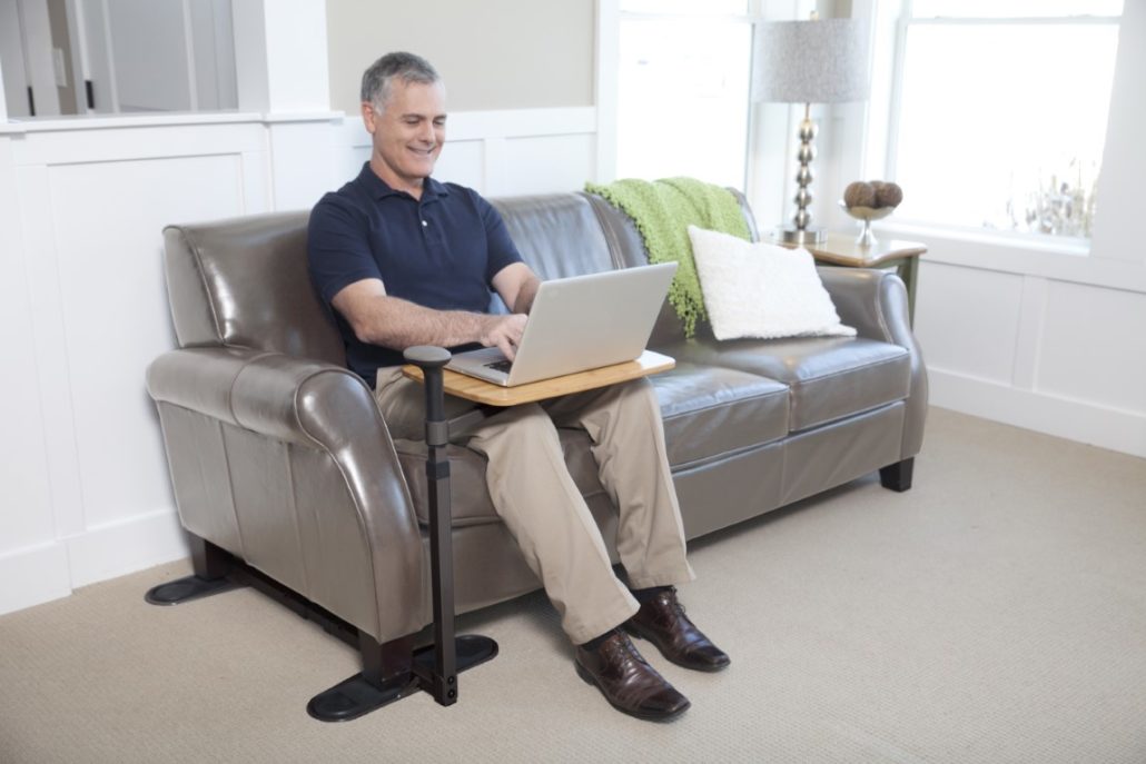 Die Aufstehhilfe Gentleman mit Betttisch verfügt über hilfreiche Funktionen in der häuslichen Pflege, die Ihre Selbstständigkeit erhalten oder Ihnen die Freizeit bequemer gestalten lassen. Wenn aufgrund einer Krankheit oder des Alters die Bewegung eingeschränkt ist, Sie aber aufstehen und sich in der Wohnung bewegen können, unterstützt die Aufrichtehilfe mit dem praktischen Beistelltisch Sie in Ihrer Eigenständigkeit. Fällt das nach vorne beugen beim Essen schwer, kein Problem, jetzt kommt der Tisch als Tablett zu Ihnen. Das schwenkbare Tablett ist zur Stelle, wenn Sie Essen oder einfach Dinge in Reichweite ablegen möchten. Schwenken Sie es einfach vor dem Aufstehen zur Seite. Optimal auch nutzbar für die Arbeit mit dem Laptop.