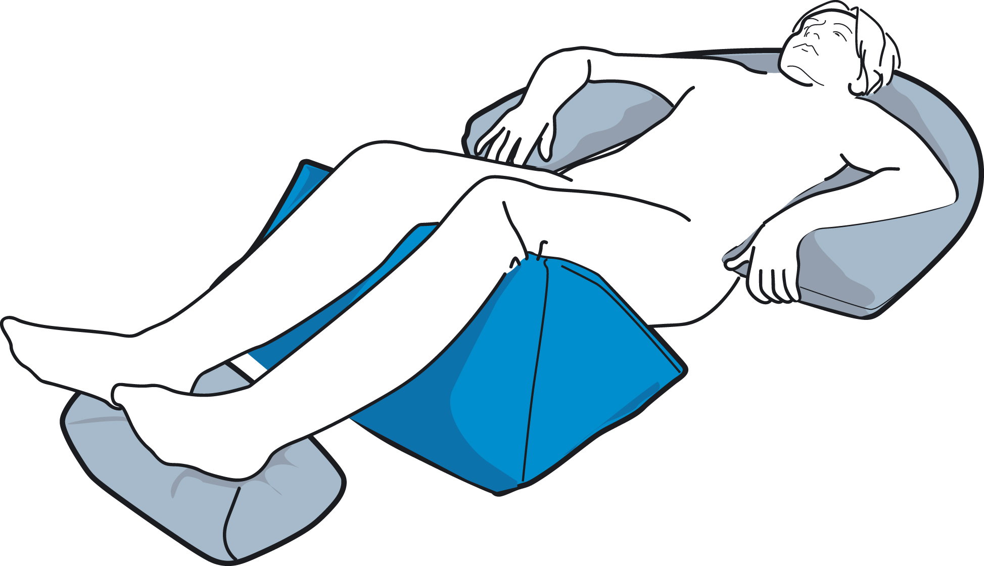 Weiterhin findet es in der häuslichen Pflege bettlägriger Personen in Rückenlage des Patienten zur Unterfütterung der Kniebeuge, bei gleichzeitiger Druckumverteilung im Bereich des Kreuzbeins, zur Durchführung einer Spitzfußprophylaxe bei Platzierung direkt an der Fußsohle oder zur 135°-Lagerung seinen Einsatz. In einer Sitzposition (z. B. im Rollstuhl) kann es zudem als Auflage eines hemiparetischen Arms verwendet werden. (Bei der Anwendung im Sitzen)