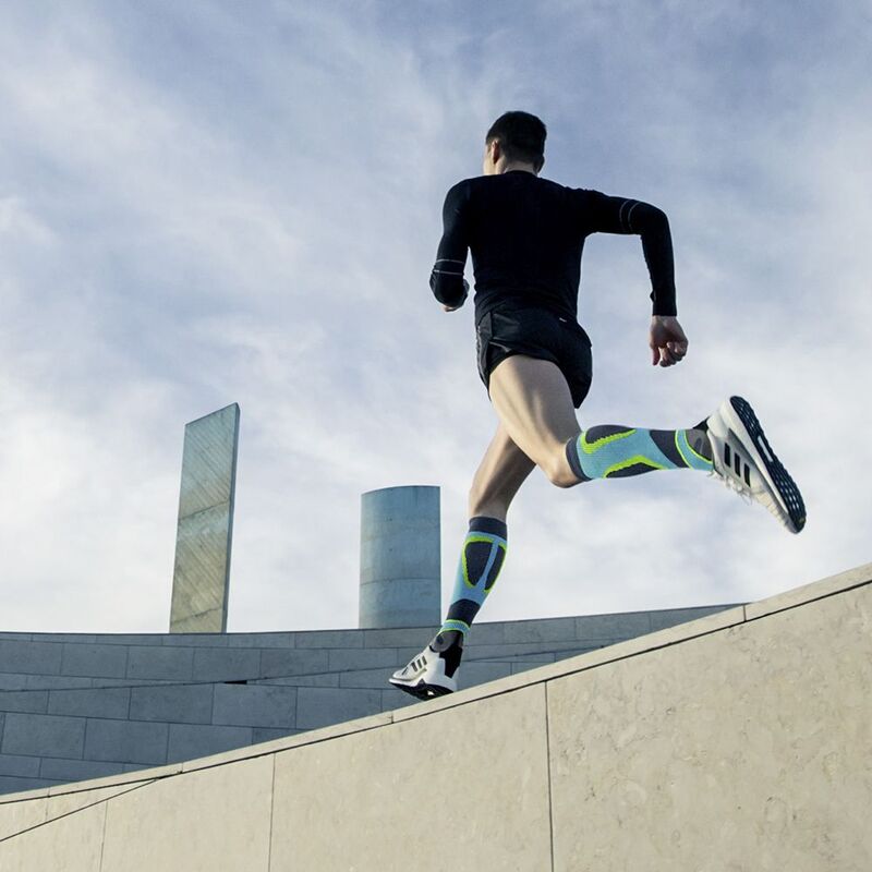 Die Funktionszonen erhöhen mit muskelspezifischer Kompression die Leistungsfähigkeit der Wadenmuskulatur und halten die Wadenmuskulatur länger im optimalen Leistungsbereich