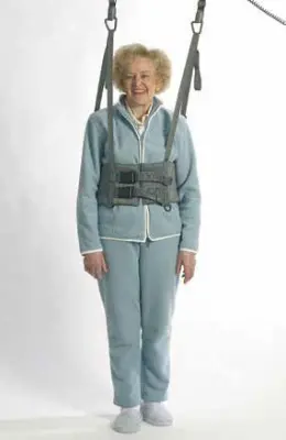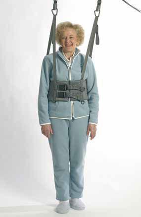 Die Steh- und Transferweste ist ideal für den Einsatz mit einem Deckenlifter. Sie ist für mobilere Nutzer geeignet, da das Körpergewicht teils vom Patienten, teils vom Stützsystem getragen wird. Sie unterstützt den Patienten bei Gleichgewichts-, Steh- und Gehübungen. Sie kann auch bei der Körperhygiene eingesetzt werden. Der Patient sollte die Beine belasten und stehen können.