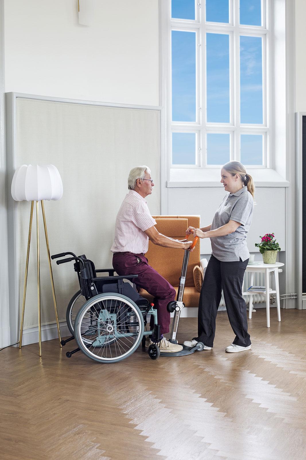 Das Umsetzen mit Hebe- und Drehbewegungen wird beim Patienten oft als Unsicherheit empfunden. Mit dem Turner PRO kann der Patient seine Bewegungen selbst kontrollieren, wird sicherer und der Vorgang des Umsetzens deutlich vereinfacht. Voraussetzung ist, dass der Umzusetzende stabil in den Beinen ist und sich mit Unterstützung hinstellen kann.