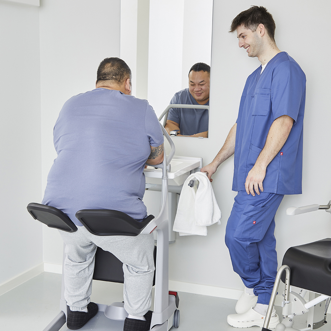 Denn der Transfer von Patienten ist mehr als nur eine Bewegung - er ist ein wichtiger Teil der Rehabilitation und Erhaltung körperlicher Fähigkeiten. Der Molift Transfer Pro trägt zu einer sicheren und gesunden Pflegeumgebung sowohl für den Nutzer als auch für das Pflegepersonal bei. Während der Interaktion kann der Blickkontakt zum Patienten aufrechterhalten werden, der würdevolle Ablauf bietet mehr Sicherheit und sorgt für eine rückenschonende Tätigkeit Ihres Personals.
