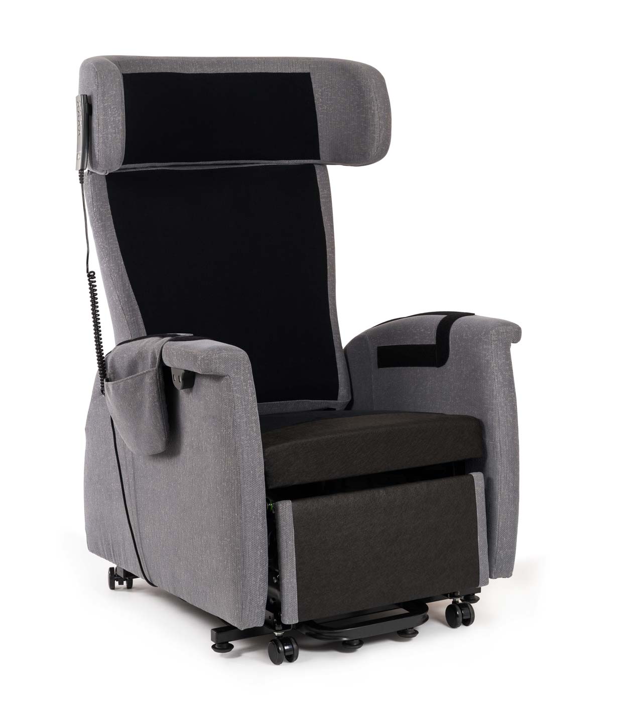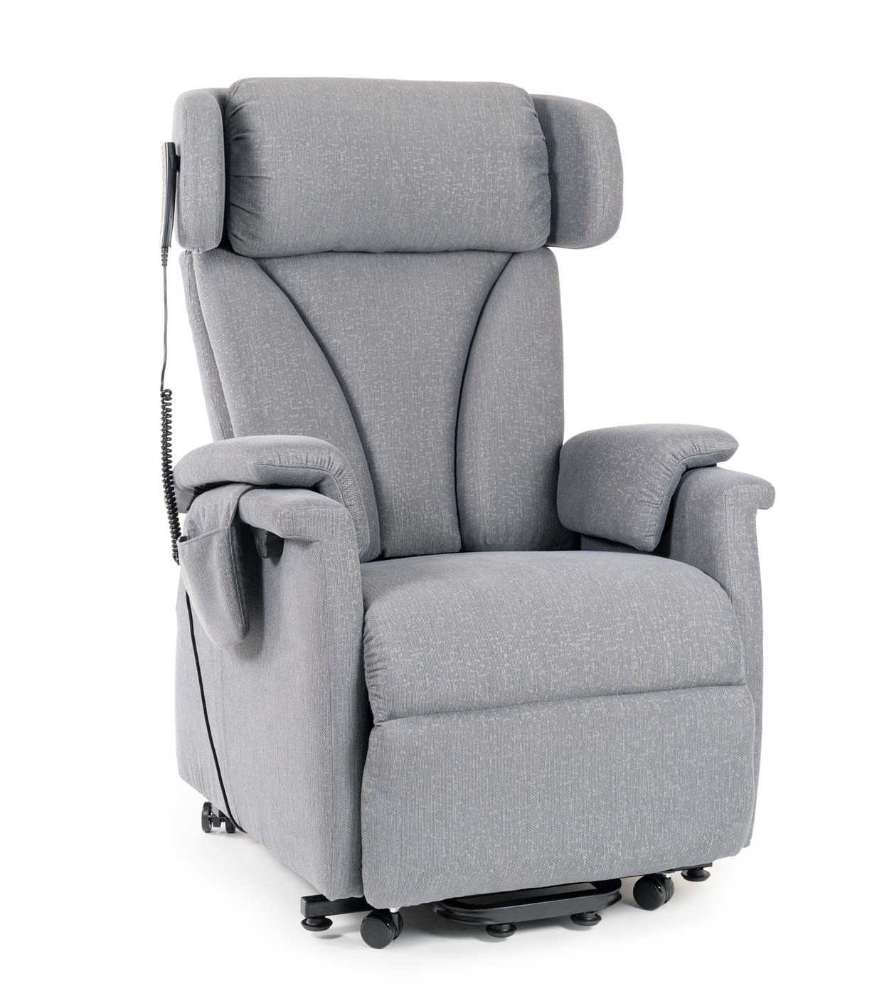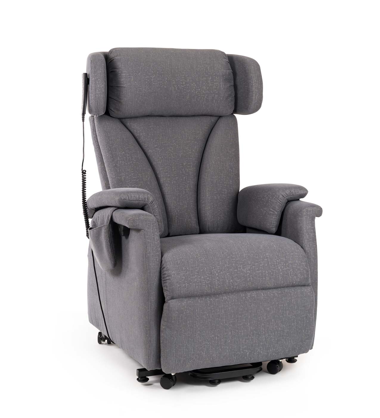 Der Saljol Relax- und Aufstehsessel mit einstellbarer Kopfstütze ist mit festem Polster in Sitzbreite 47 cm oder softig weicher Polsterung in Sitzbreite 42 cm verfügbar und für Nutzer mit einer Körpergröße von 1,60 bis 1,90 m geeignet. Mit der magnetischen Fernbedienung, die mit einem wiederaufladbaren Akku für ca. 30 Schaltzyklen ausgestattet ist, lässt sich der gewünschte Sitz- und Liegekomfort einfach einstellen. Ausgerüstet mit elektrisch verstellbarer Rückenlehne mit Lordosenstütze und Fußstütze, zwei USB-Anschlüssen und Rollen zum Verschieben sichert ein Saljol Aufstehsessel den Erhalt Ihrer Eigenständigkeit.