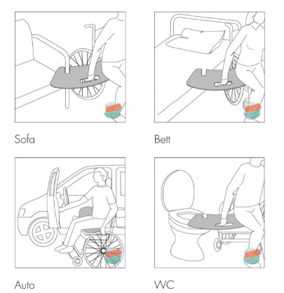 Das gelbe Transferboard Buffalo 150 ist Ihr funktionales Kraftpakt zum sicheren Umsetzen von Rehastage.
