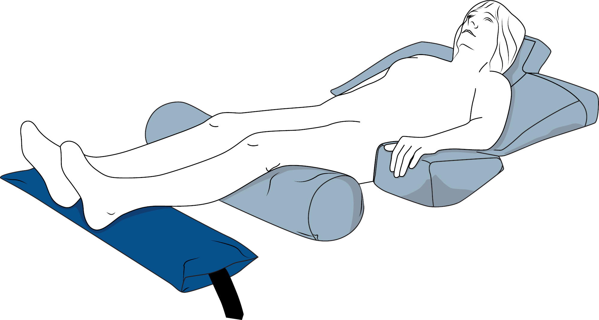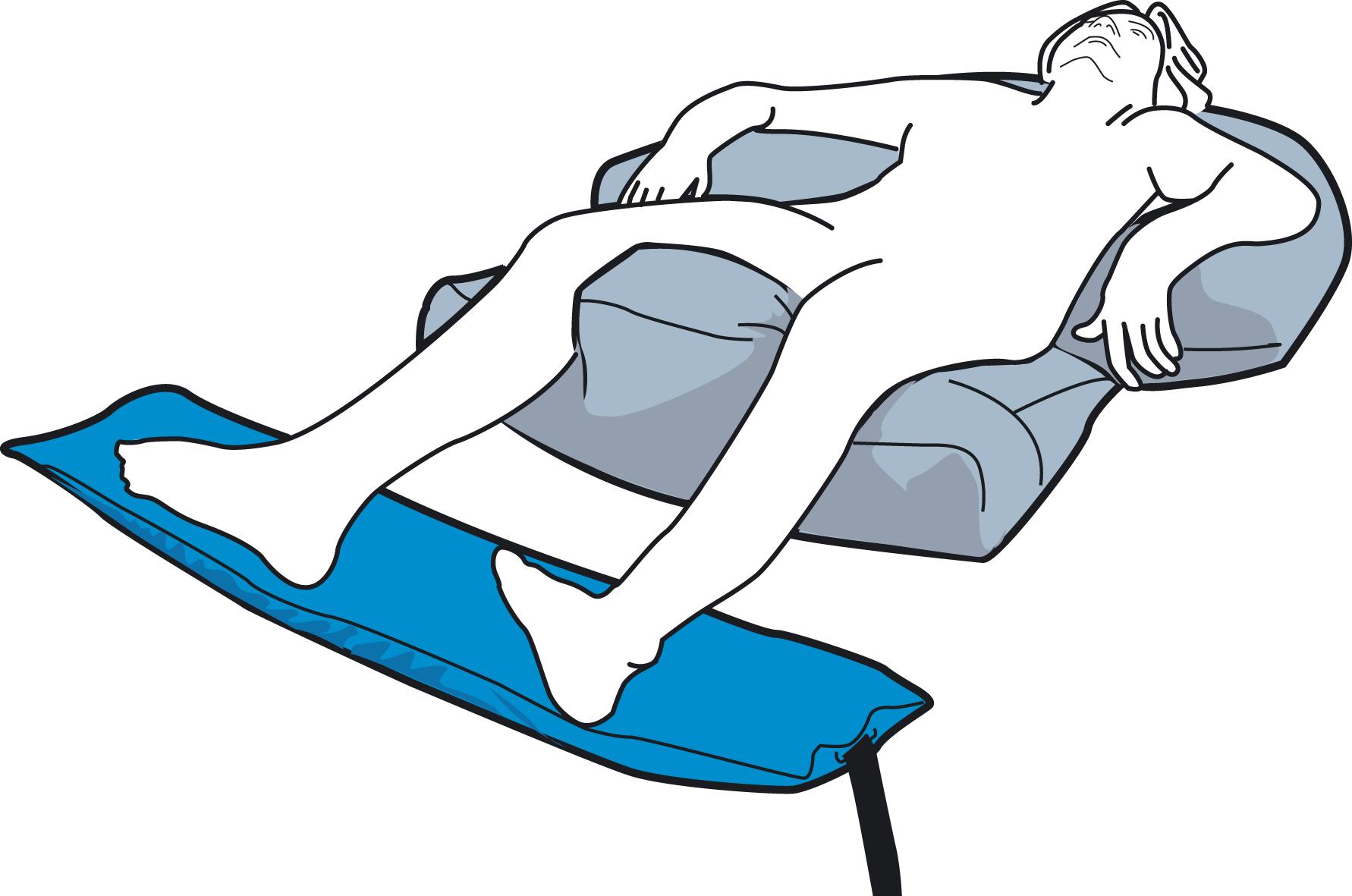 - Die Fersenfreilagerung mithilfe eines Carepur Fersenentlastungsgurtes erfolgt in Rückenlage der bettlägrige Person.