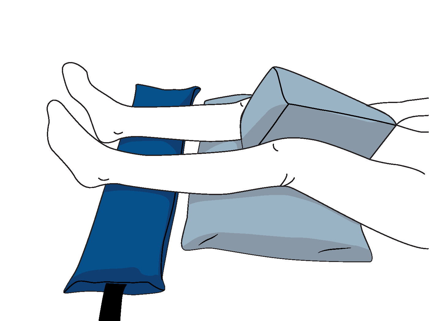 - Am Fußbrett des Pflegebettes befestigt ist der Fersenfreilagerungsgurt zur Positionierung als Lagerungskissen zur Unterstützung bei Spitzfußprophylaxe verwendbar.