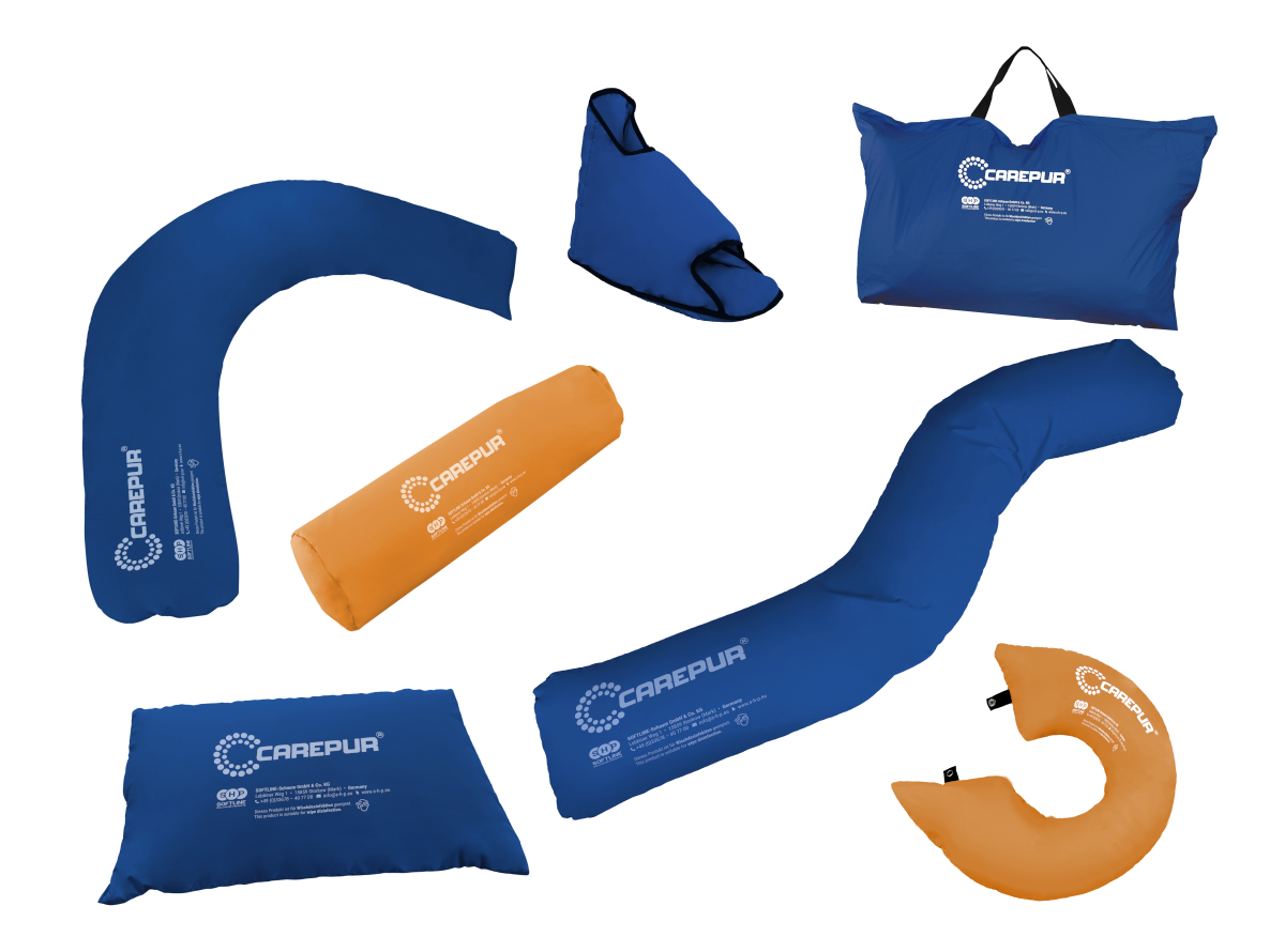 Alle Lagerungskissen der Carepur-Produktlinie verfügen über eine Hilfsmittelnummer und sind somit grundsätzlich erstattungsfähig. Der Bezug besteht aus einem bi-elastischem Polyamidgewebe mit einer antibakteriellen Polyurethanbeschichtung. Daher sind alle Lagerungskissen wasserdicht und atmungsaktiv, abwaschbar und vor allem wischdesinfizierbar. Bitte verwenden Sie zur Desinfektion und Reinigung ausschließlich halogenfreie Mittel.