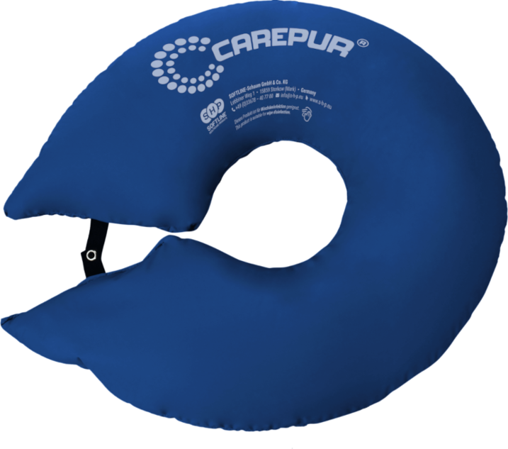 - Hauptsächlich findet das Ringkissen M von SHP Softline Anwendung in der Rücken- oder Seitenlage bzw. im Sitzen zur Weichlagerung und Stabilisierung des Kopfes und der angrenzenden Halspartie. Dabei wird das Carepur Ringkissen M um den Hals des Anwenders gelegt und mittels eines Druckknopfes verschlossen.