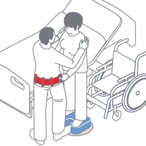 - Die Alpha Drehscheibe kann stehfähigen Patienten das Umsetzen z. B. zwischen Bett und Rollstuhl erleichtern.
