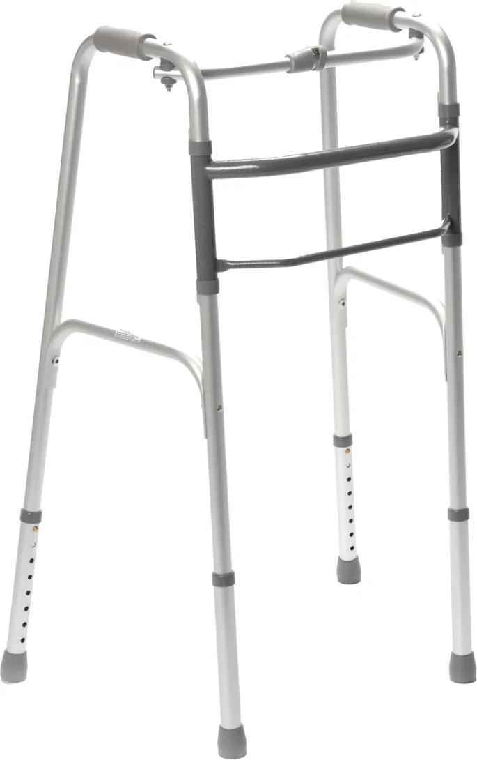 - Mit nur einem Knopfdruck lässt diese Gehhilfe sich falten und platzsparend verstauen.