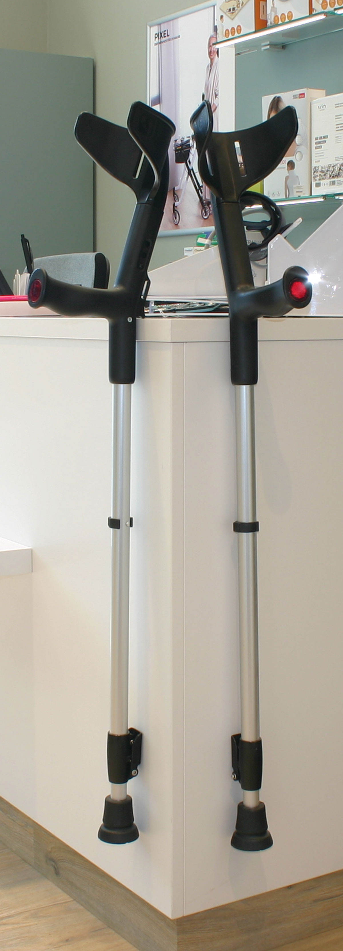 Die Rebotec Unterarmgehstützen BIG 250 schwarz, Paar sind hochbelastbar bis 250 kg und verfügen über eine weite Armschale. Die verstärkte Armschale ist stabil. Für Ihren sicheren Gang sorgt der stabile Fuß mit großer Auflagefläche. Der Hersteller Rebotec hat hierzu gleich den BIG-Foot Antirutschpuffer verwendet, sodass Sie auf allen Untergründen im Innen- und Außenbereich ein sicheres Auftreten haben. Für die richtige Handfreiheit sorgt ein Abstellsystem / Haken an der Rückseite auf Höhe der Griff, mit dem Sie die Gehhilfen einfach wegstellen können.