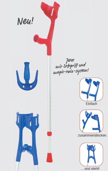 Die Rebotec Unterarmgehstützen Magic Soft, Paar mit ergonomisch geformten Softgriffen und dem oft genutzten, bewährten Magic-Twin- Abstellsystem.