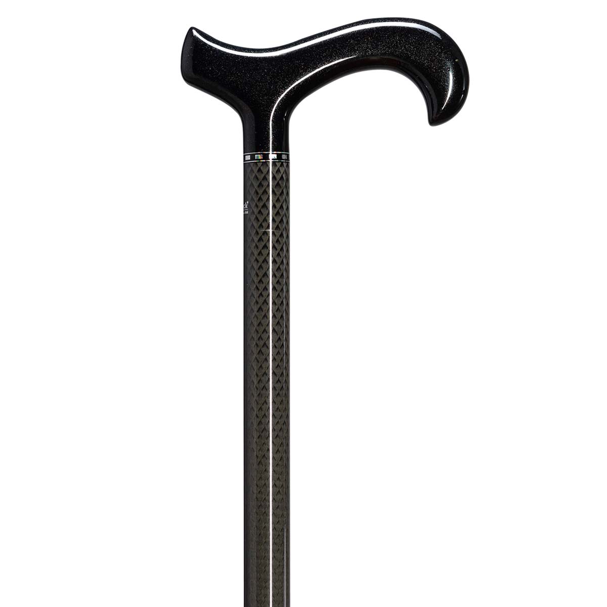 Der Herren Gehstock Carbon-Derby in schwarzer Carbon-Optik ist ein höhenverstellbarer und 275 g leichter Handstock mit ergonomischem DERBY-Handgriff. Sein höhenverstellbarer Schuss lässt sich in 7 Stufen in der Griffhöhe von 79 bis 96 cm einstellen. Der beidseitig führbare Derby-Griff der Gehhilfe und der Schuss sind im effektvollen Glanz-Finish gehalten.